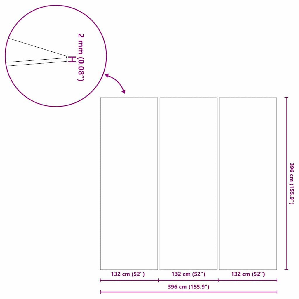 - Általános dimenziók: 396 x 396 x 0,1 cm (Ho x Szé x Ma)