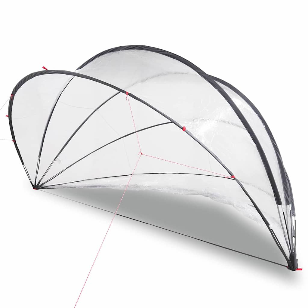 - Komplett felszerelés: A medence dómja minden szükséges kiegészítőt tartalmaz, beleértve a rugalmas üvegszálú pólusokat, praktikusan hordozható táskát és stabilizáló rögzítő zsinórokat. Mindezek biztosítják a könnyű telepítést és a biztonságot viharos időben.