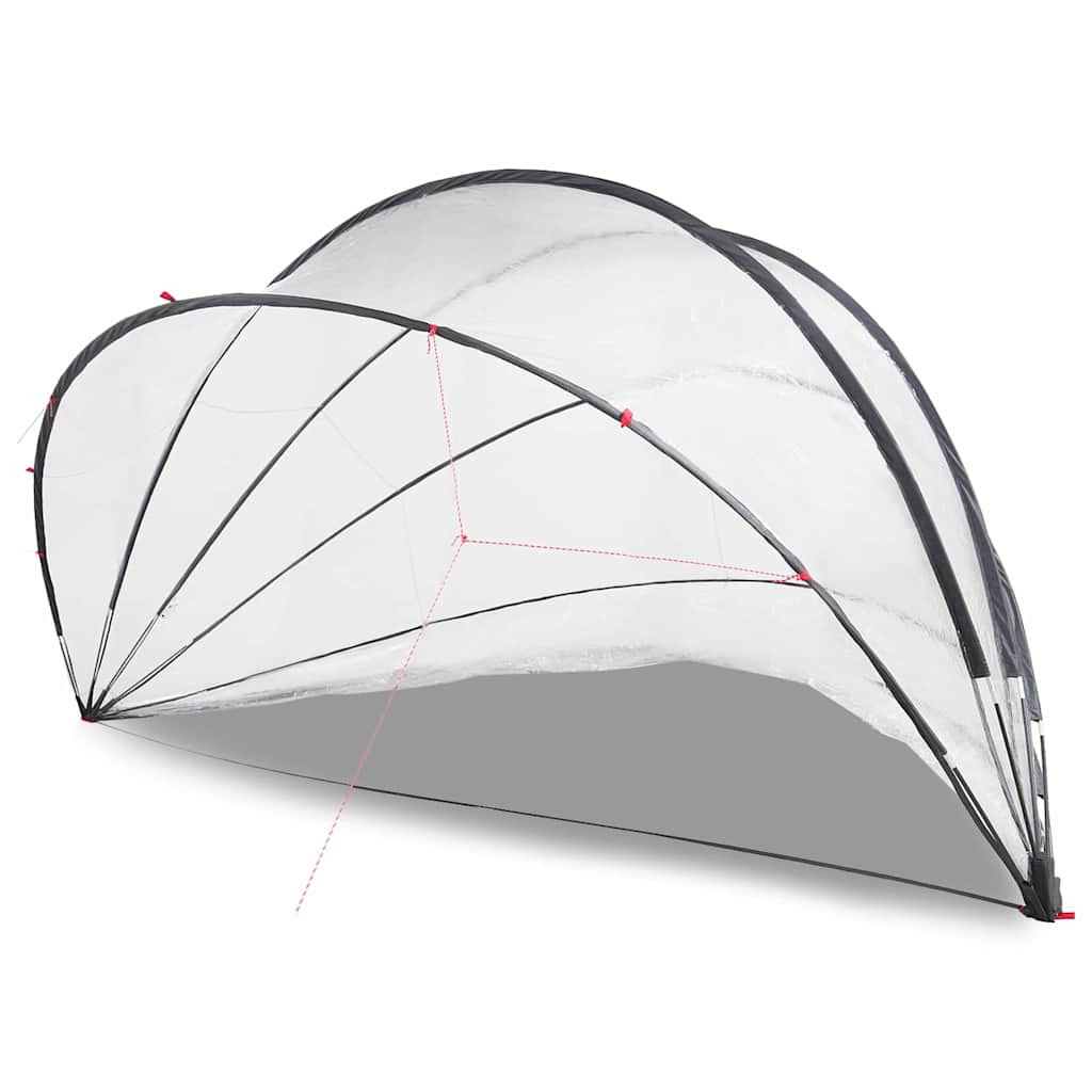 - Komplett felszerelés: A medence dómja minden szükséges kiegészítőt tartalmaz, beleértve a rugalmas üvegszálú pólusokat, praktikusan hordozható táskát és stabilizáló rögzítő zsinórokat. Mindezek biztosítják a könnyű telepítést és a biztonságot viharos időben.
