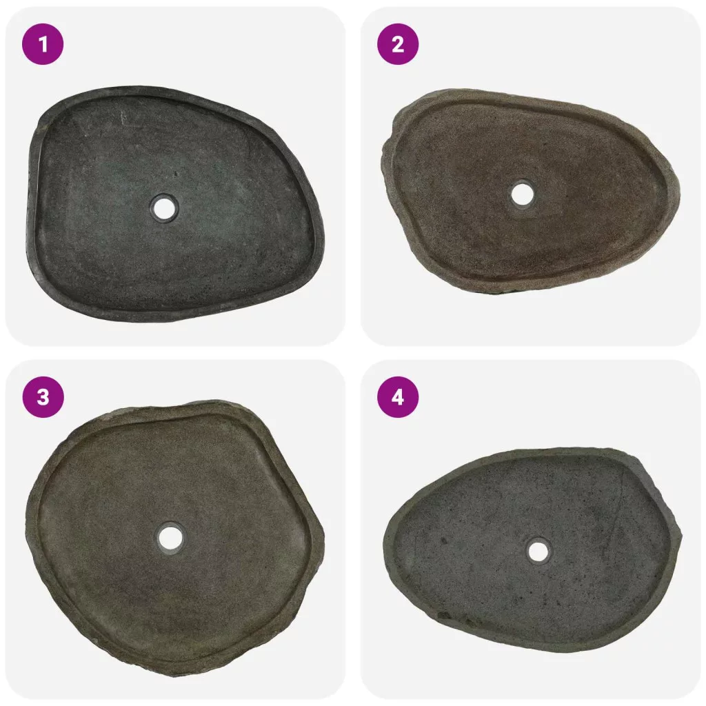 - A folyami kő természetes termék, ezért színben vagy formában eltérések lehetnek. Nézd meg a fotókat a termékeink példáiért. A valóságban a termék világosabb vagy sötétebb lehet, mint a képeken, és néha a termék színeket is keverhet. Ha több mosdót rendelsz, nem tudjuk garantálni, hogy a méretek, a forma és a szín azonosak lesznek.