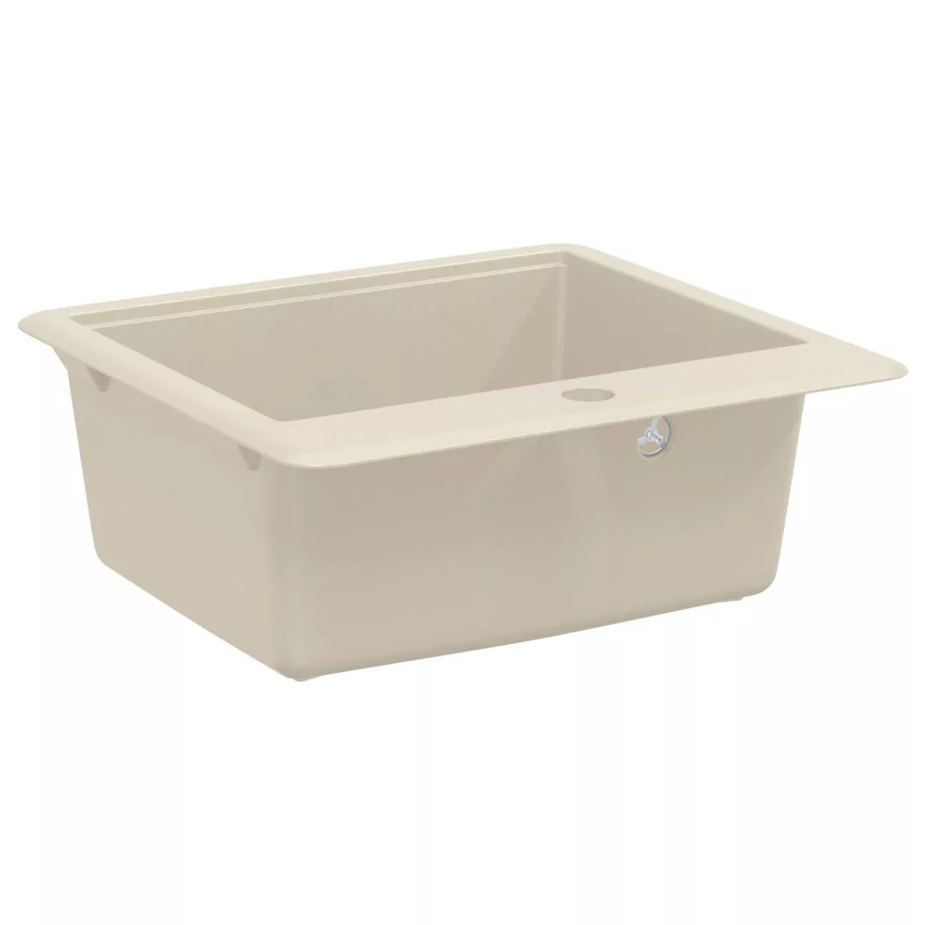 - Gránitból készült: Ez a mosogató gránitból készült, ami híres a keménységéről és a hő-, karc- és foltállóságáról. Ez az ellenálló anyag időtlen eleganciát biztosít és garantálja a tartósságot, így praktikus választás a forgalmas konyhákhoz, ahol gyakori a főzés és takarítás.