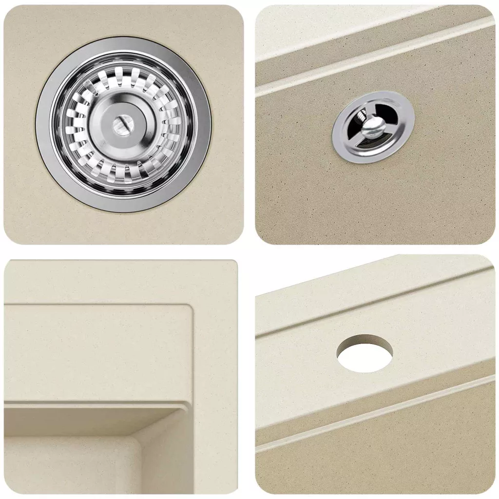 - Könnyű karbantartás: A mosogató kiváló állapotban tartása egyszerű a tartós gránit felületének köszönhetően, ami távol tartja a foltokat és lehetővé teszi az egyszerű tisztítást. Akár a forró serpenyőktől származó hőt, akár a napi kiömléseket kell kezelned, felülete minimális erőfeszítéssel marad tiszta.