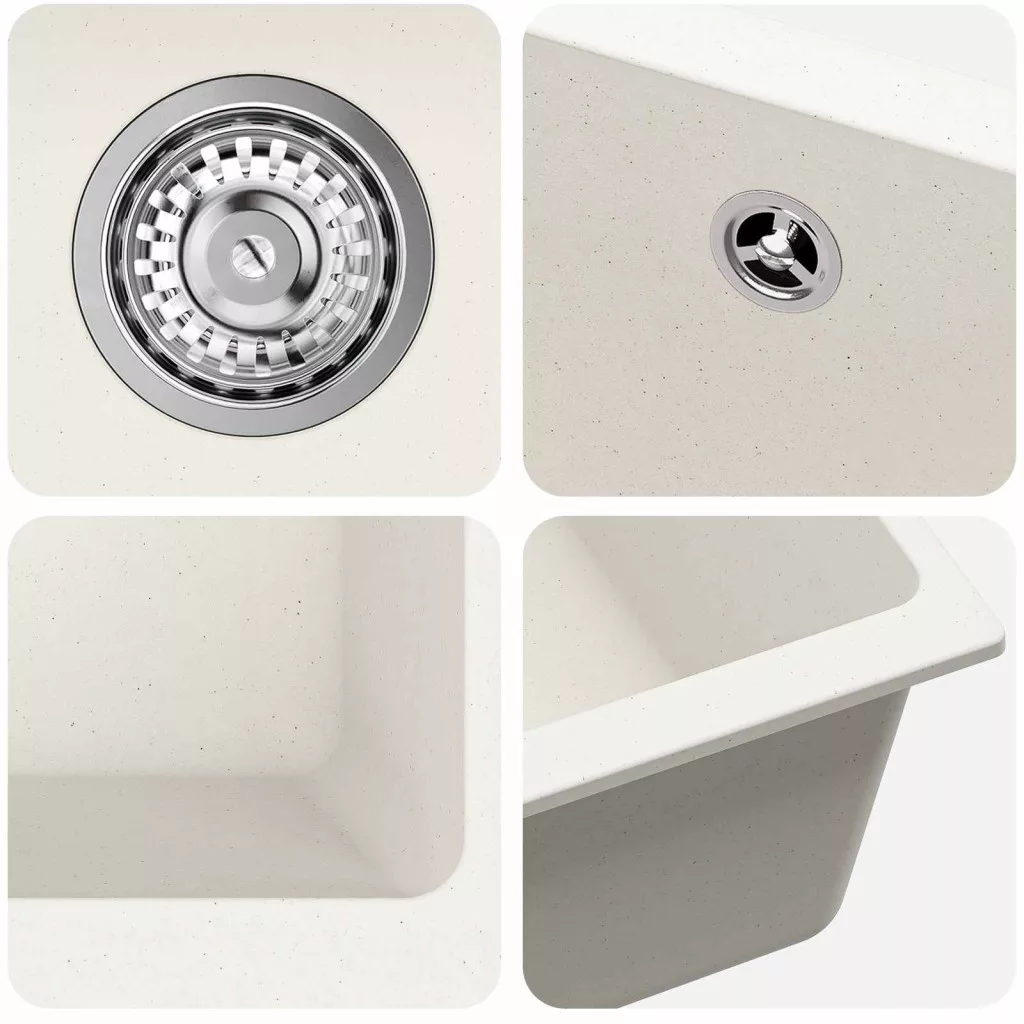 - Prémium gránit anyag: Konyhai mosogató fine gránitból készült, amiről köztudott, hogy tartós és robusztus. A természetes kő elegáns megjelenést kölcsönöz, és jól ellenáll a karcolásoknak, foltoknak, így szépsége hosszú ideig megmarad.