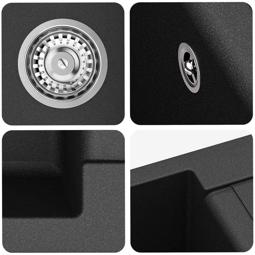- Anyagok: Készül egy speciális keverékből, 80% kvarcból és 20% gyantából, ami extra tartósságot biztosít. Ez az összetétel remek ellenállást nyújt a karcoknak, így a mosogató megőrzi a hibátlan kinézetét még intenzív használat során is.