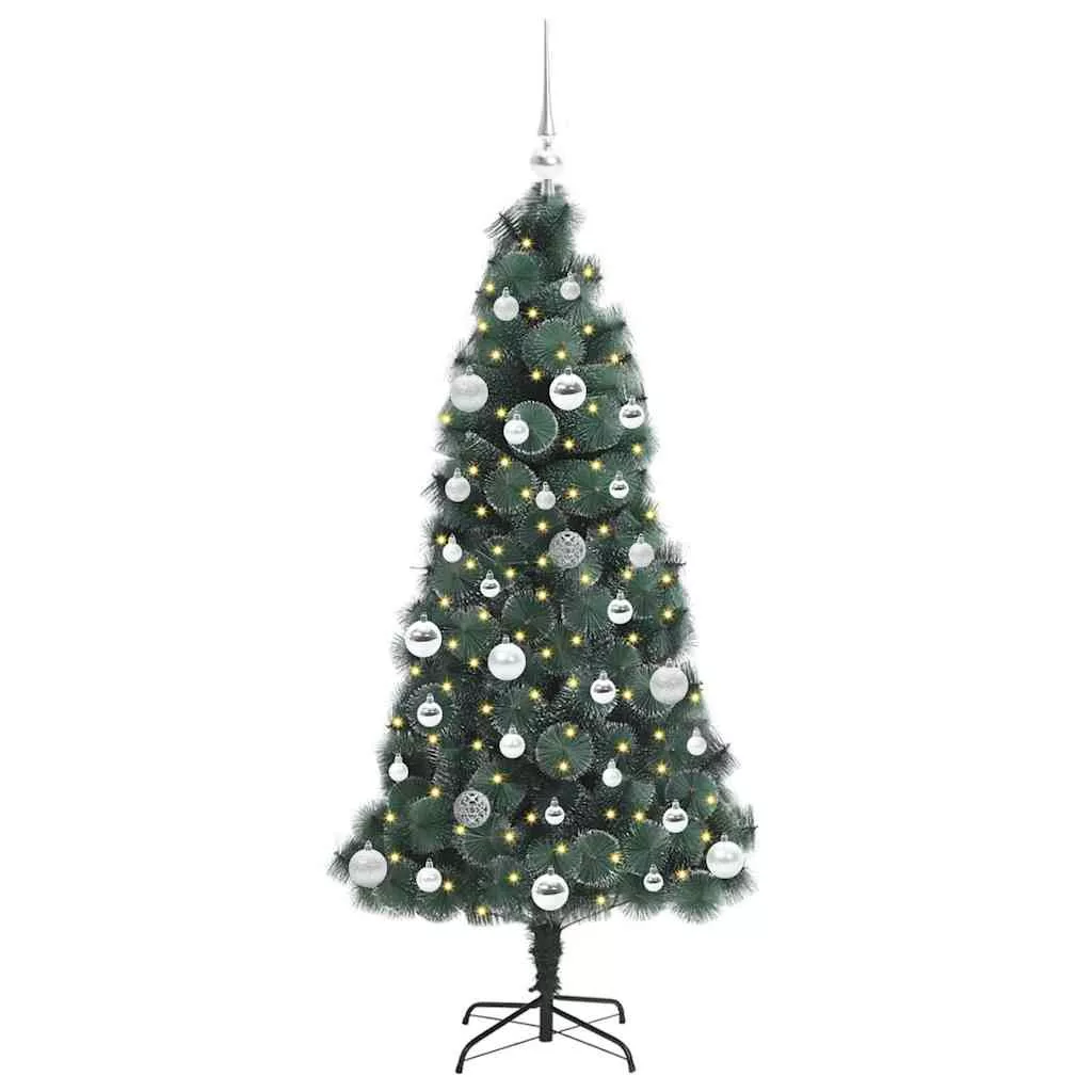 vidaXL Műfenyő előre világítós karácsonyfa golyó szettel Zöld 150 cm