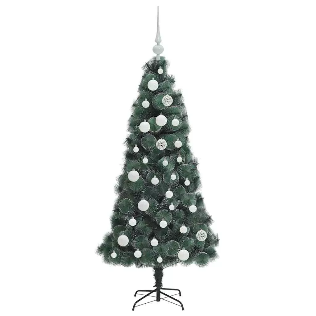 vidaXL Műfenyő előre világított karácsonyfa gömbkészlettel Zöld 120 cm