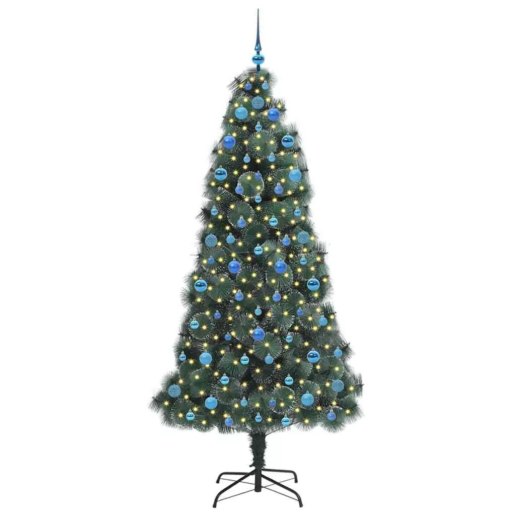 vidaXL Műfenyő világítással és dísz készlettel Zöld 210 cm PET