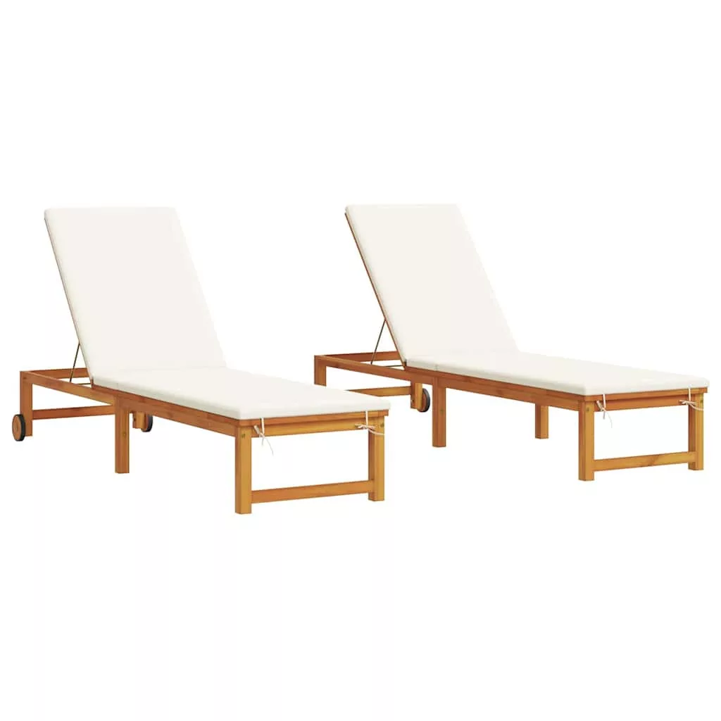 vidaXL Napozó párnával 2 pcs Barna 53 x 202 x 89cm Tömör akácfa