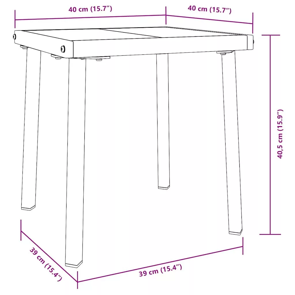 - 1 x asztal: 40 x 40 x 40.5 cm (HxSzxM)
