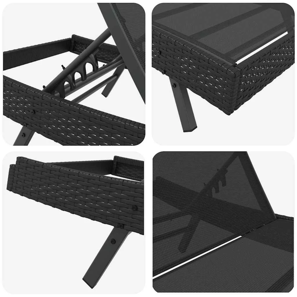 Ez a napozóágy asztallal a stílus és a funkcionalitás tökéletes kombinációját nyújtja bármilyen kültéri helyzetben. Teraszokra, erkélyekre és kertekbe tervezték, modern megjelenése, letisztult vonalai és minimális díszítése miatt remek kiegészítője a térnek. Az állítható háttámla lehetővé teszi, hogy személyre szabottán pihenj, idealizálva ezzel a napfényben való időtöltést vagy a társalgást. A karcsú oldalasztal megkönnyíti az italok vagy személyes tárgyak elérhetőségét, így még kellemesebb a pihenés. A gazdag fekete felület visszafogott eleganciát hoz, fokozva a kültéri helyiség összképét.