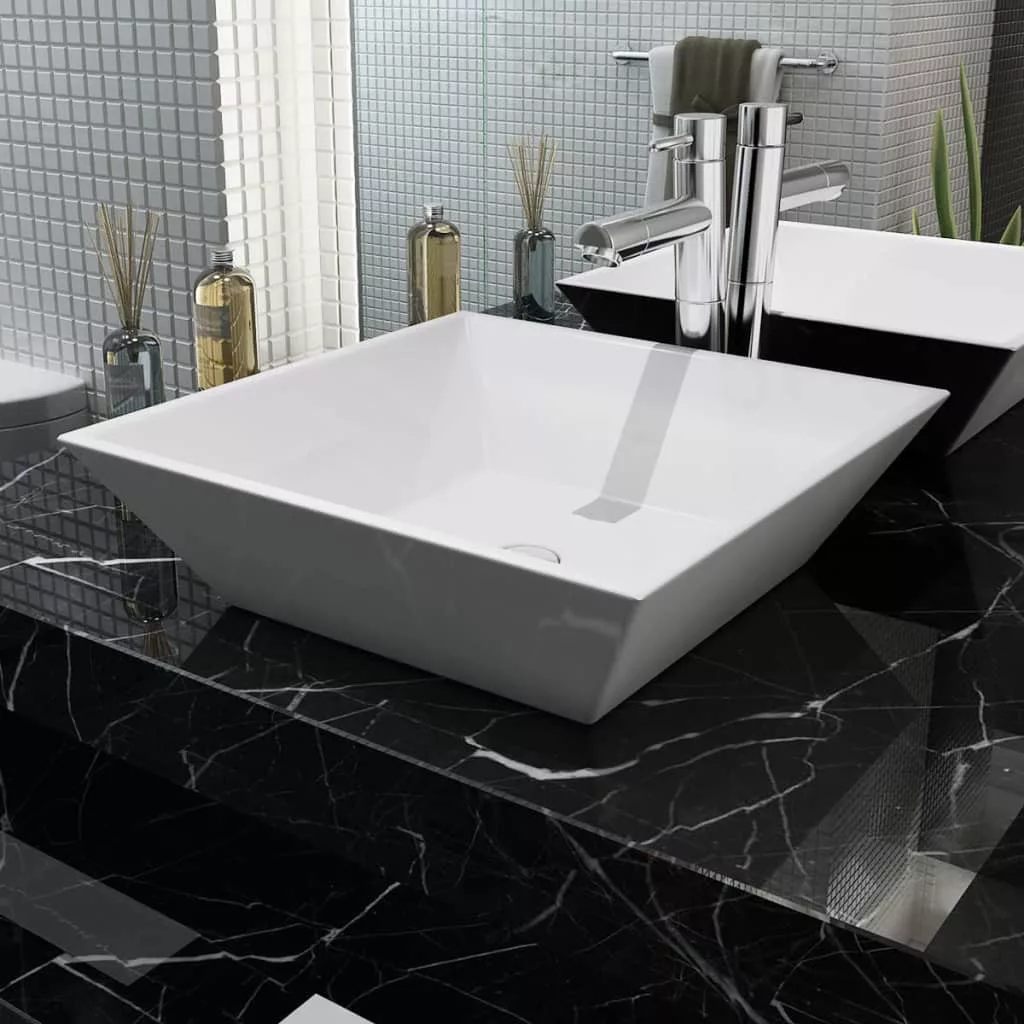 Ez az prémium kerámiából készült, négyzetes mosdókagyló bármely fürdőszoba, mosókonyha vagy mosdó stílusos kiegészítője lehet. Fényes bevonattal ellátott felülete modern, mégis elegáns megjelenést kölcsönöz neki.