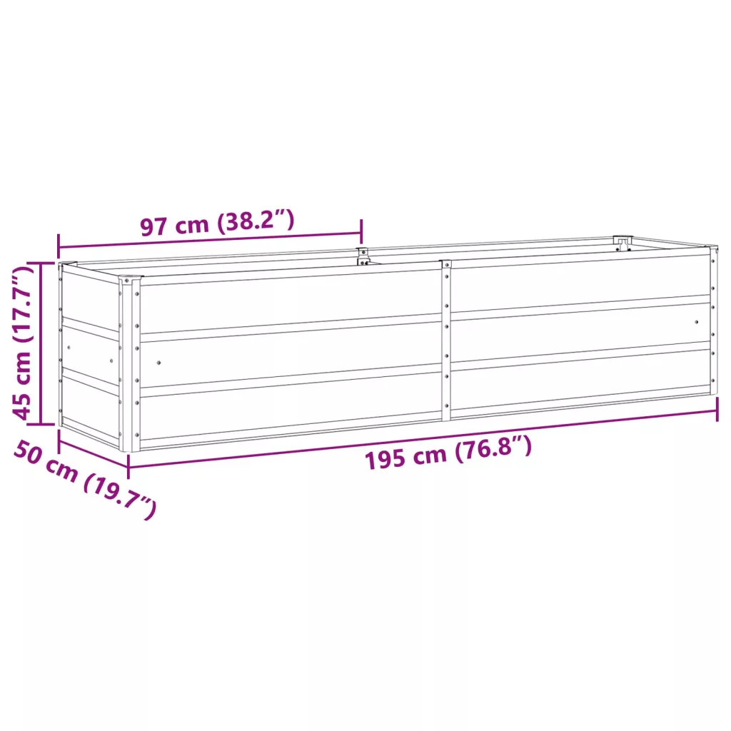 Ez a színes acél cserép ipari ihletésű modern érintést ad bármilyen kertnek vagy terasznak, összekapcsolva a funkcionalitást és a látványt. Galvanizált acélból készült, ami tartós és autentikus ipari bájt kölcsönöz neki. A masszív dizájnja miatt kiválóan alkalmas kültéri használatra, tökéletes összhangban a modern és hagyományos stílusú területekkel.