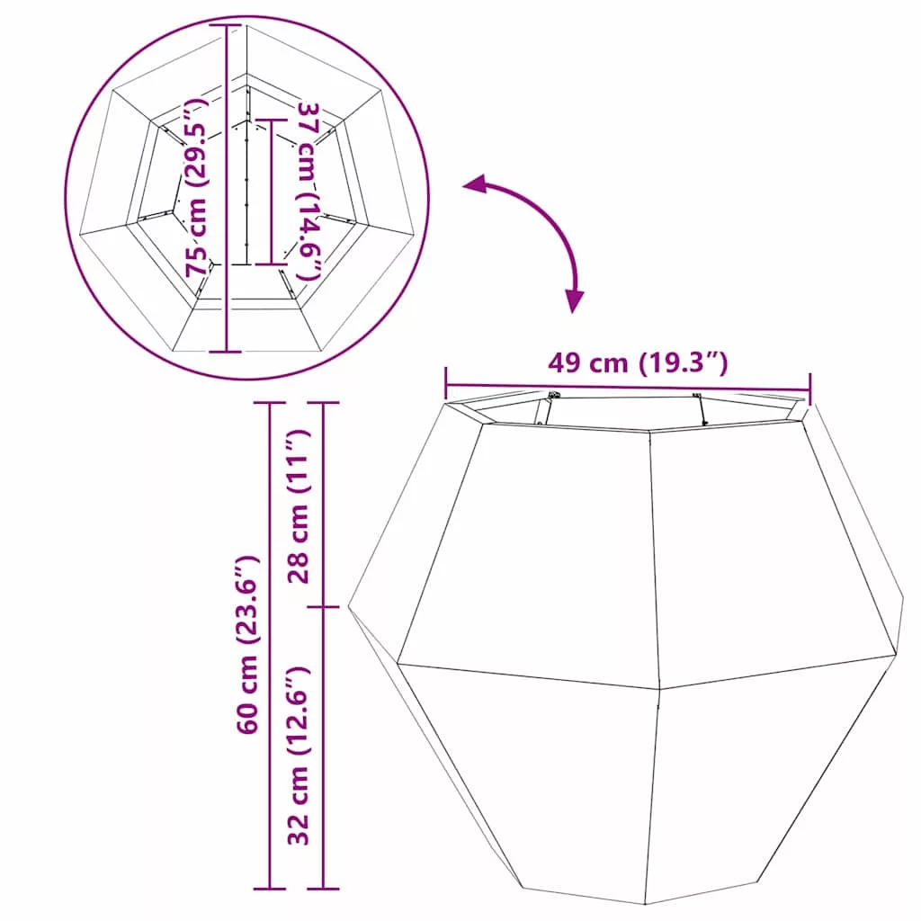 Ez a tartós virágcserép elengedhetetlen a kültéri dekorálók számára, mert bármilyen kertet vagy teraszt felpimpel. A prémium acélból készült téglalap alakú cserép a funkcionalitás és a dizájn tökéletes keverékét biztosítja, bármilyen növényhez kiváló. Legyen szó egy élénk ablakpárkányos kertről vagy egy dús teraszról, ez a virágcserép garantálja, hogy a növényeid stílusosan növekedjenek.