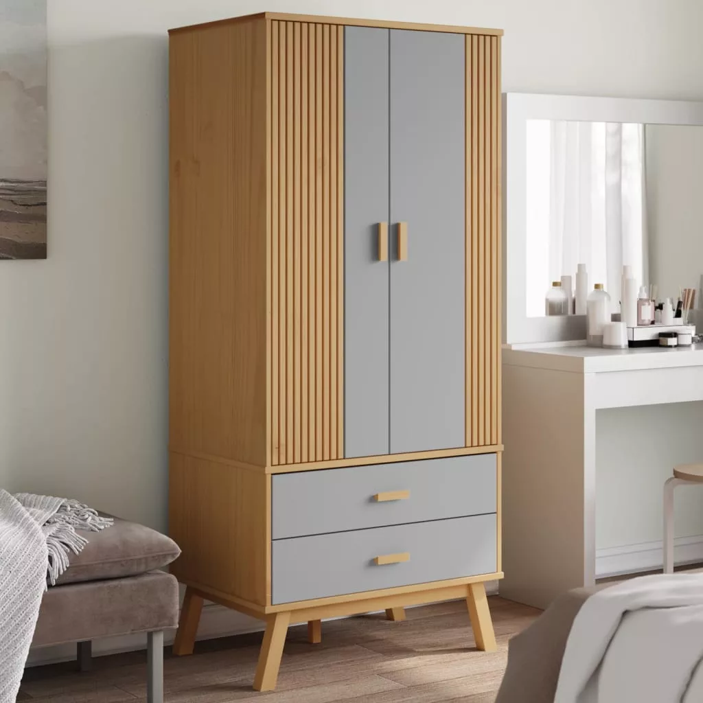 Ez a klasszikus, skandináv dizájnnal rendelkező, fából készült ruhásszekrény bőséges tárolóhelyet biztosít ruhái és kiegészítői rendezett tárolásához.