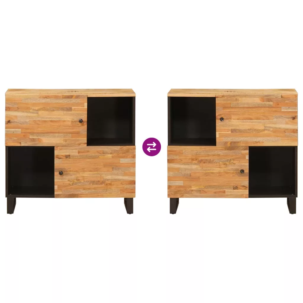 - Anyagok: tömör mangófa Fenntarthatóan beszerzett mangófát használ, ami nemcsak tartósságot, hanem meleg, földszínű árnyalatot is ad a térnek. Az egyedi faerezet minden szekrény esetében különleges megjelenést biztosít. Ez a fa ideális választás a hosszú távúság érdekében, minimális karbantartással.