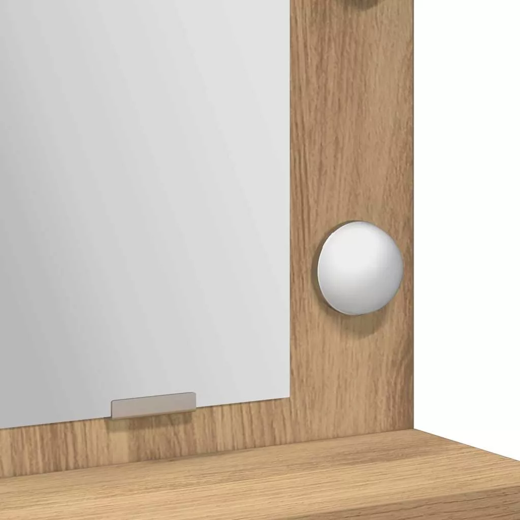 - Integrált világítás: Az asztal LED világítással van felszerelve, így minden sminkelés során tökéletes fényt biztosít. A praktikus nyomógomb egyszerűsíti a használatot, hogy még kényelmesebb legyen az öltözködés.