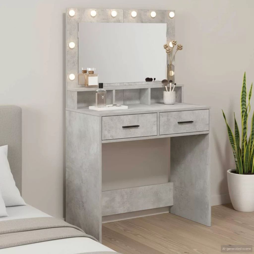 - Integrált világítás: Az asztal LED világítással van felszerelve, így minden sminkelés során tökéletes fényt biztosít. A praktikus nyomógomb egyszerűsíti a használatot, hogy még kényelmesebb legyen az öltözködés.