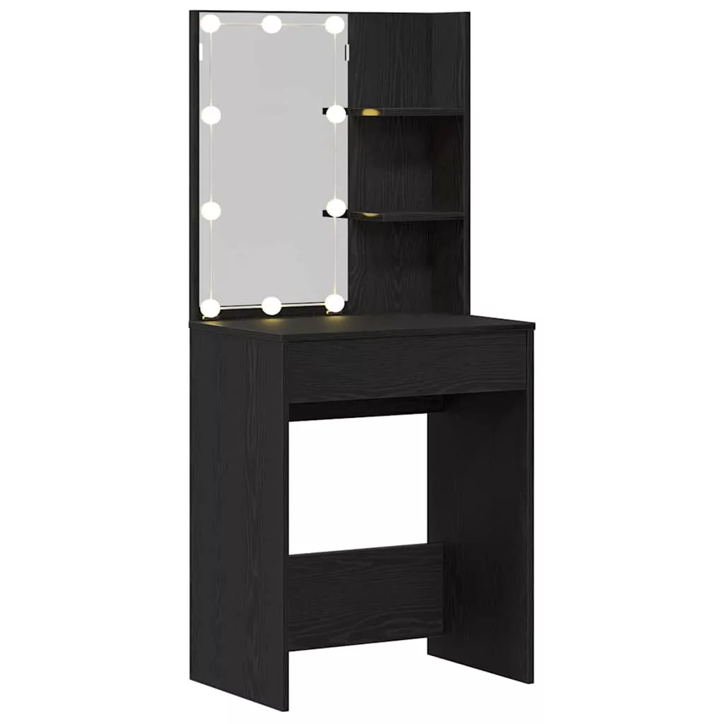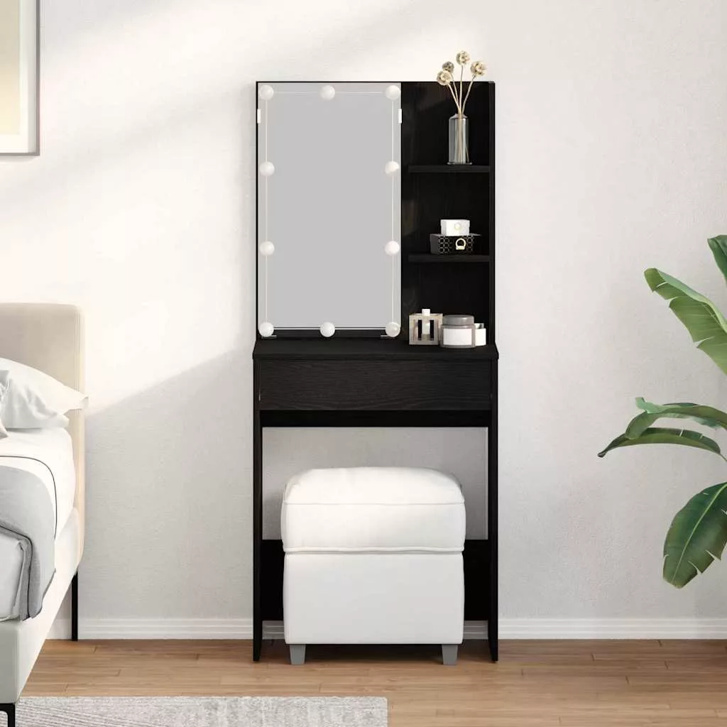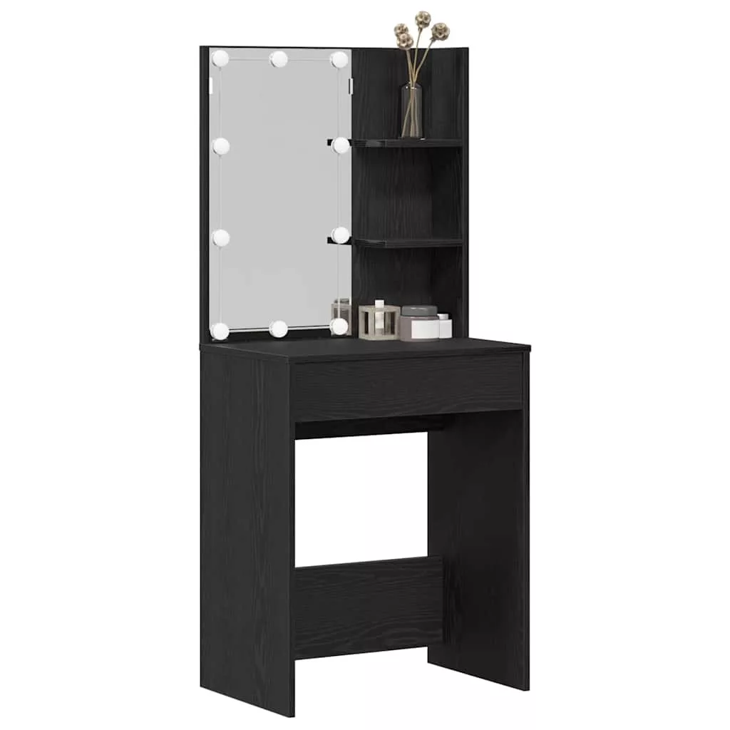 - Beépített alkatrészek: Kényelmes funkciókat tartalmaz, mint a síktükör, ami tökéletes a sminkeléshez, és a polcok, amik rengeteg helyet adnak a szükséges dolgoknak. Stílusos, hajtű lábazat segíti a stabilitást.