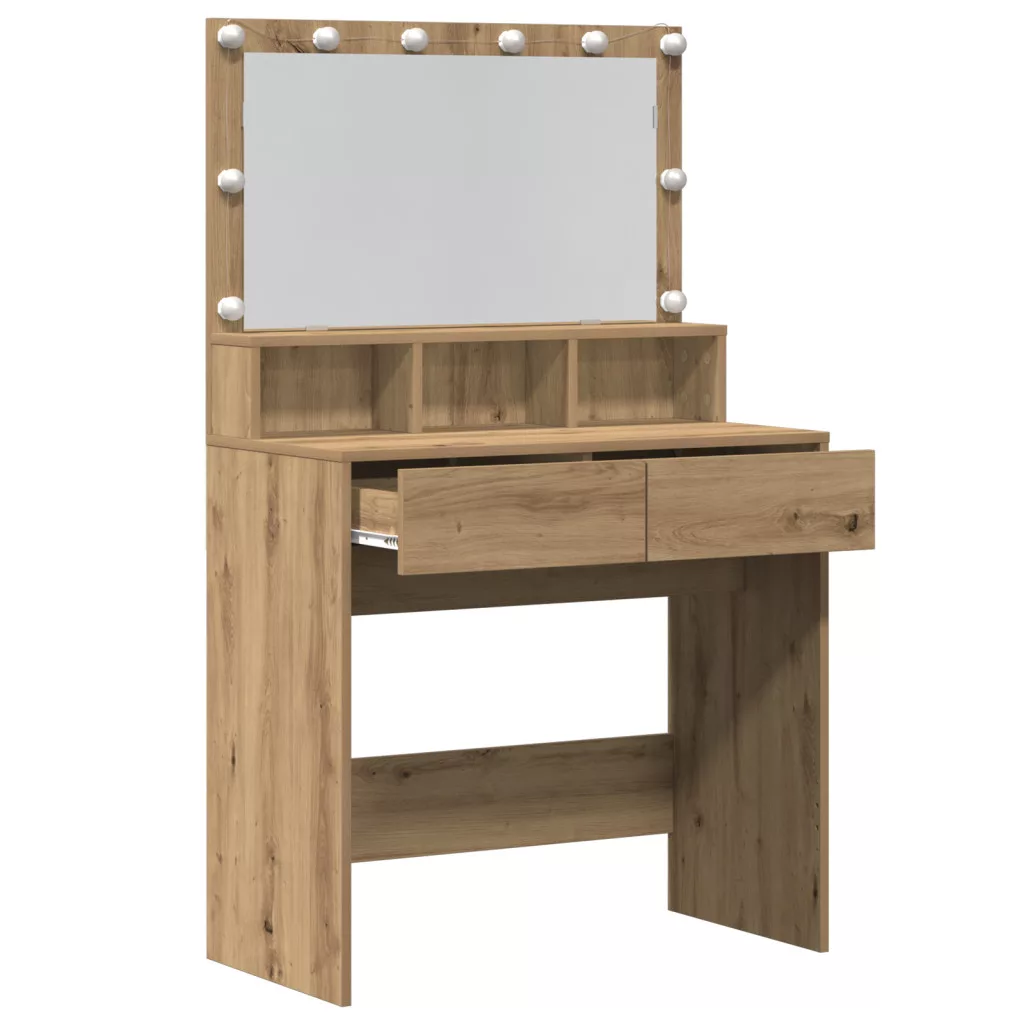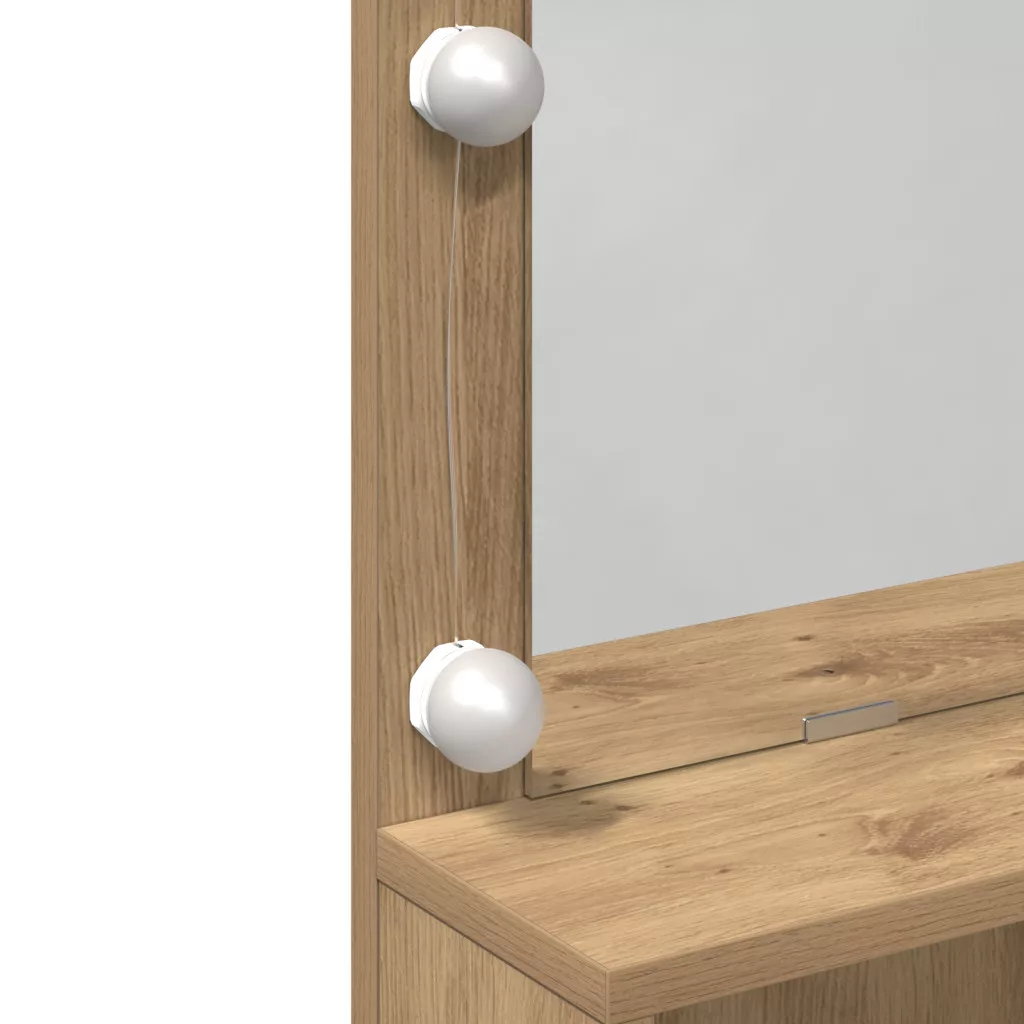 - Beépített funkciók: Felszerelt egy síktükörrel a személyes ápoláshoz és LED világítással, ami hozzájárul a világossághoz, ez az asztal praktikus és kényelmes használatot biztosít. A gombnyomással könnyen szabályozható a fény.