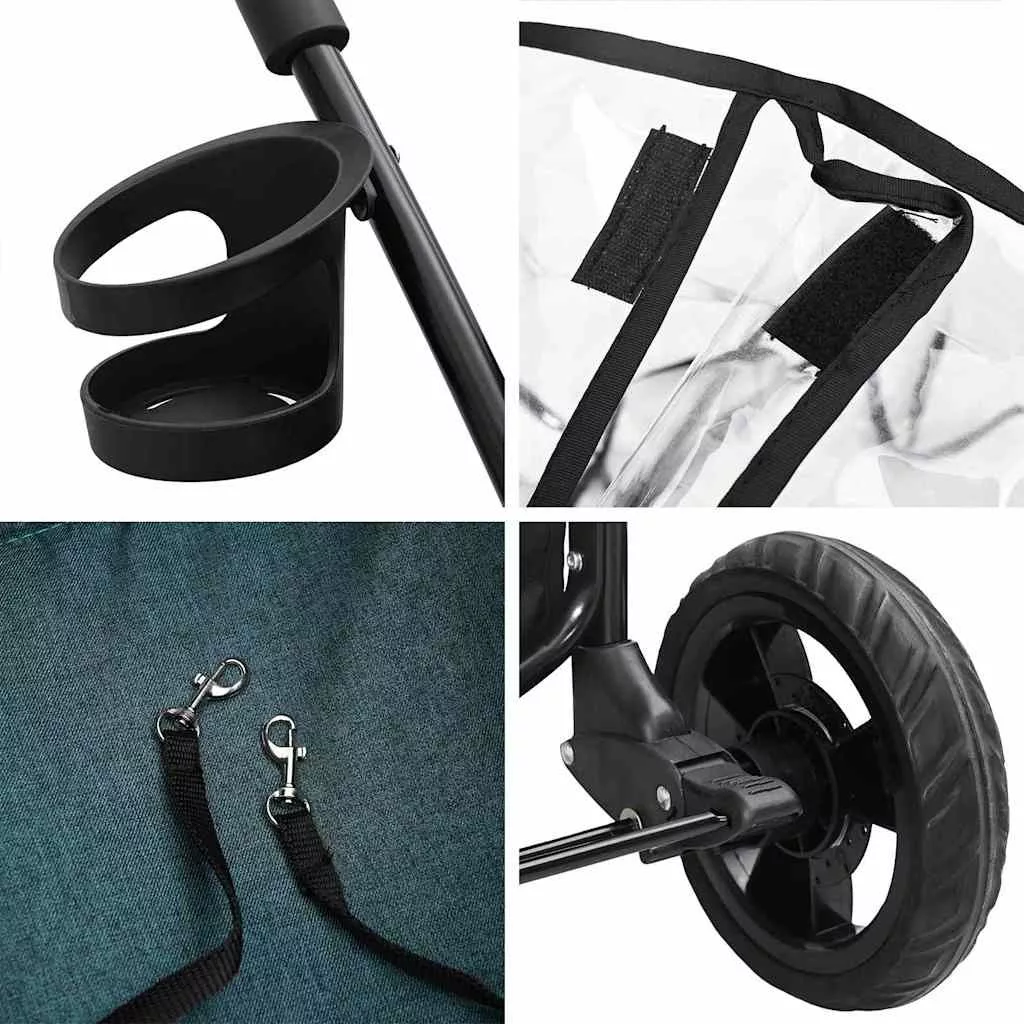 - Beépített elemek: A kisállat babakocsi különböző funkciókkal van felszerelve a felhasználói élmény javítása érdekében, mint például oldalsó zsebek a fontos dolgok gyors eléréséhez és egy alsó tárolókosár, amely extra helyet ad. Továbbá lábbal aktiválható zár és forgó első kerekek is segítik a stabil és biztonságos utazást a kisállatoknak, bárhol is vagy!