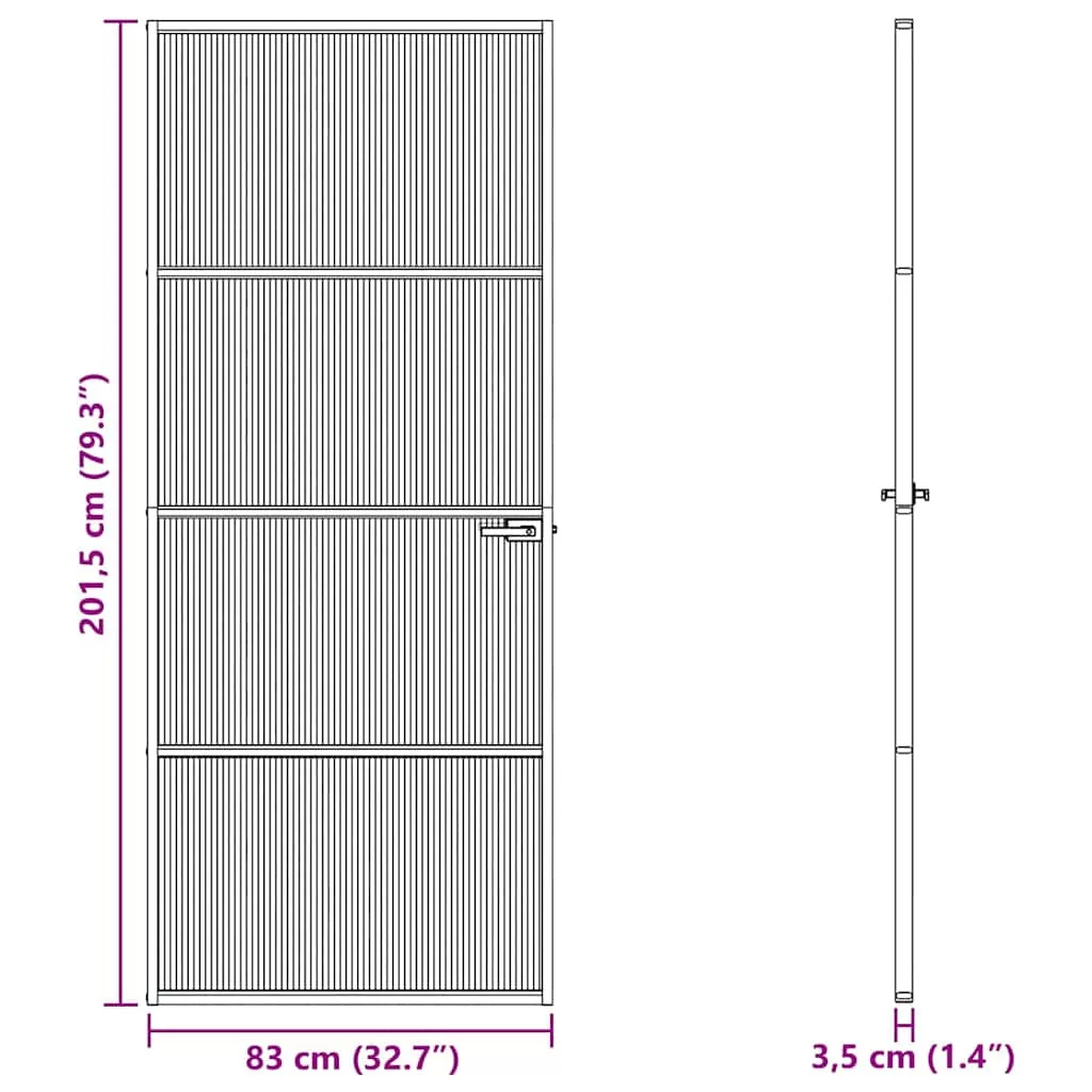 Ez a belsőajtó modern és letisztult, 76x201,5 cm-es méretben. A fekete alumínium keret jól kiegészíti a hőkezelt üveg tartósságát, ami lehetővé teszi a természetes fény beáramlását, miközben biztosítja a magánéletet. Tökéletesen illeszkedik a kortárs otthonokba, stílust és funkciót kínálva.