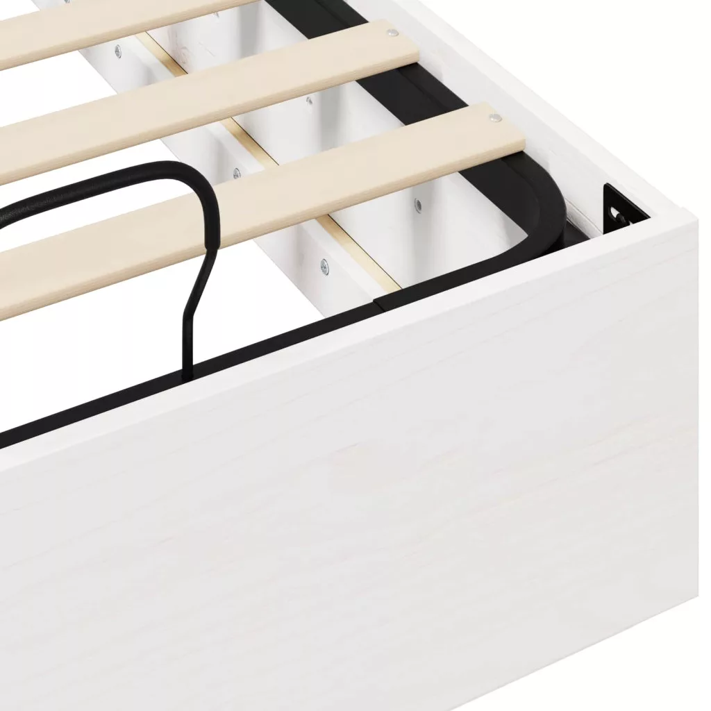 - Fogantyúk az egyszerű működéshez: Az ágykeret emelőrendszere mindkét végén elhelyezett fogantyúkkal rendelkezik, amik biztosítják a szilárd fogást és megkönnyítik a tárolóhoz való hozzáférést. Ezek a praktikus részletek javítják a felhasználói élményt, így az ágy egy stílusos és funkcionális bútordarab a hálószobádban.