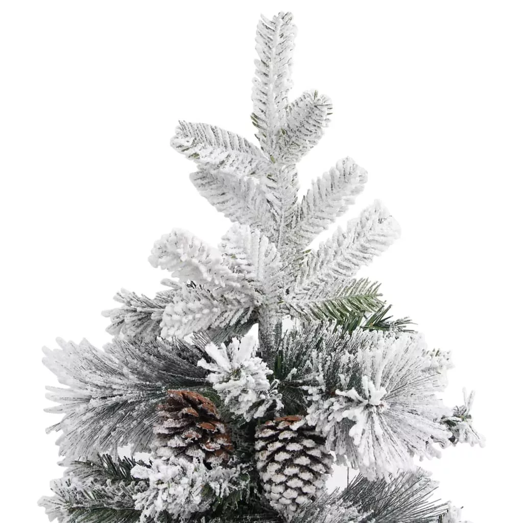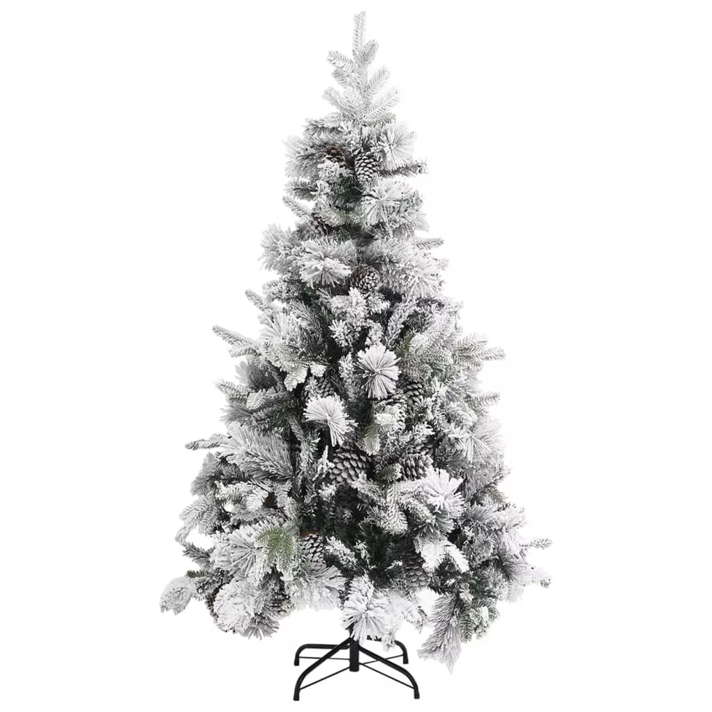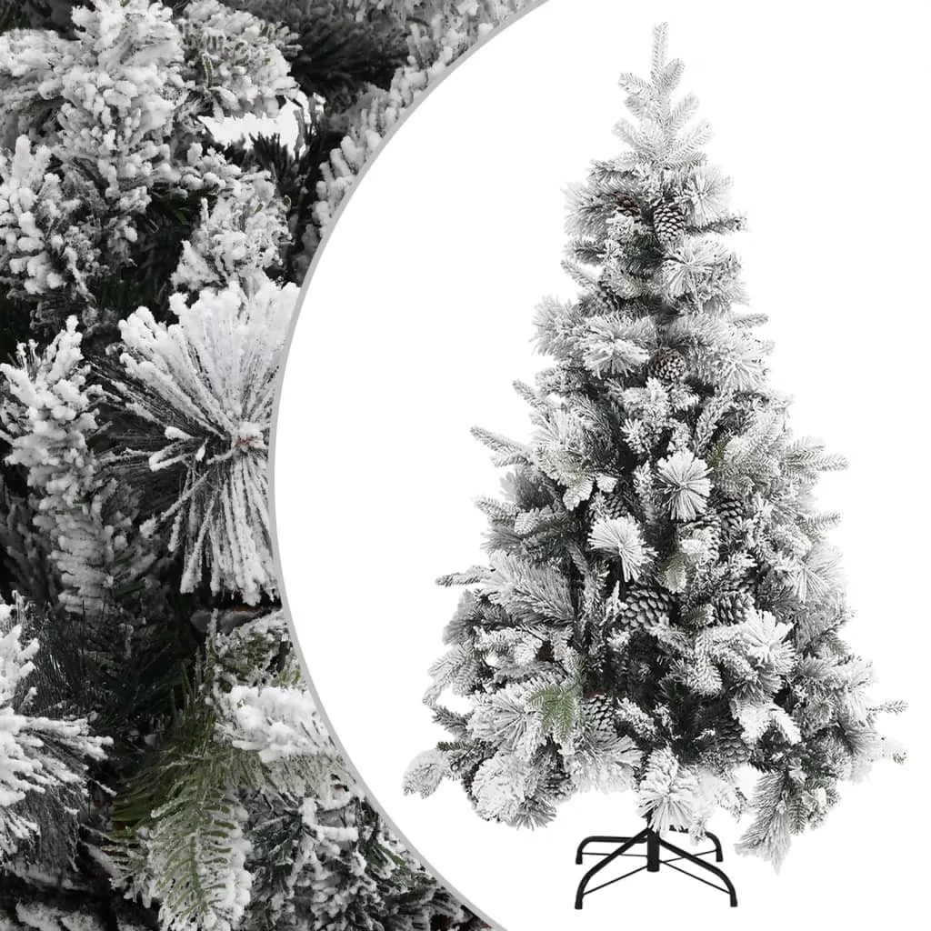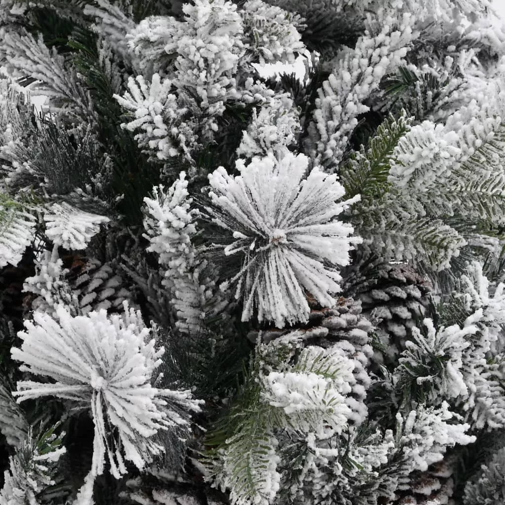 Ez a gyönyörű karácsonyfa PVC-ből és PE-ből készült ágakkal rendelkezik. Az ágak egy csuklópántrendszerrel vannak a főoszlophoz erősítve. A csuklópántoknak köszönhetően az ágak automatikusan megtalálják a megfelelő pozíciót. A tobozokkal és pelyhes fehér hóval díszített ágak eleganciát kölcsönöznek a karácsonyfa megjelenésének. A mellékelt acéltalpazat optimális stabilitást nyújt a fának.
