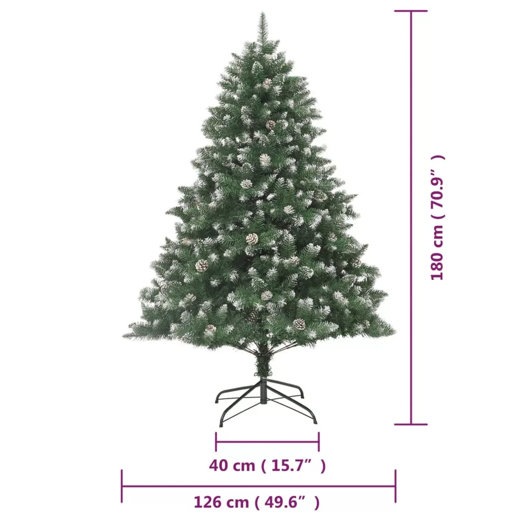 - Gyönyörű dekoráció: A karácsonyfán tobozok találhatók, amelyek gyönyörű és természetes hatást keltenek. Emellett fehér műhóval van díszítve a vonzó, hópelyhes megjelenés érdekében.