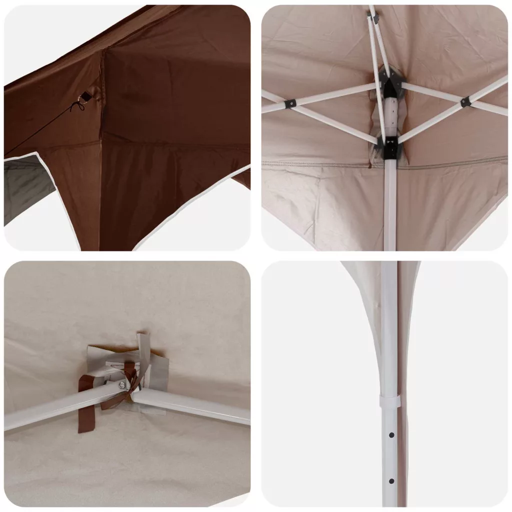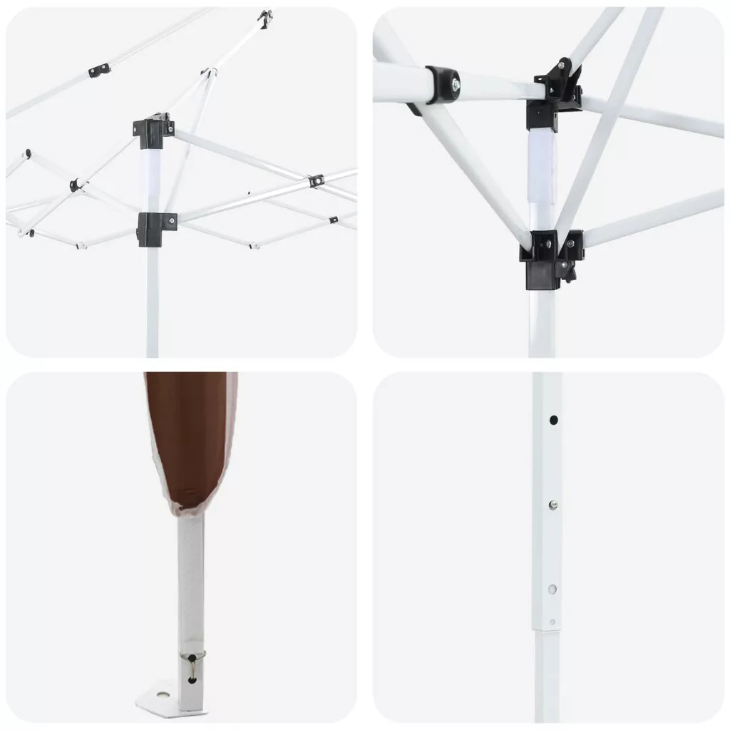 - Jellemzők / Funkció / Dizájn: A sátor manuális magasságállító mechanizmussal van ellátva, amivel három szint között választhatod meg a magasságot. Rugalmas dizájnja lehetővé teszi, hogy igazodj a különböző eseményekhez, miközben stabilan megáll.