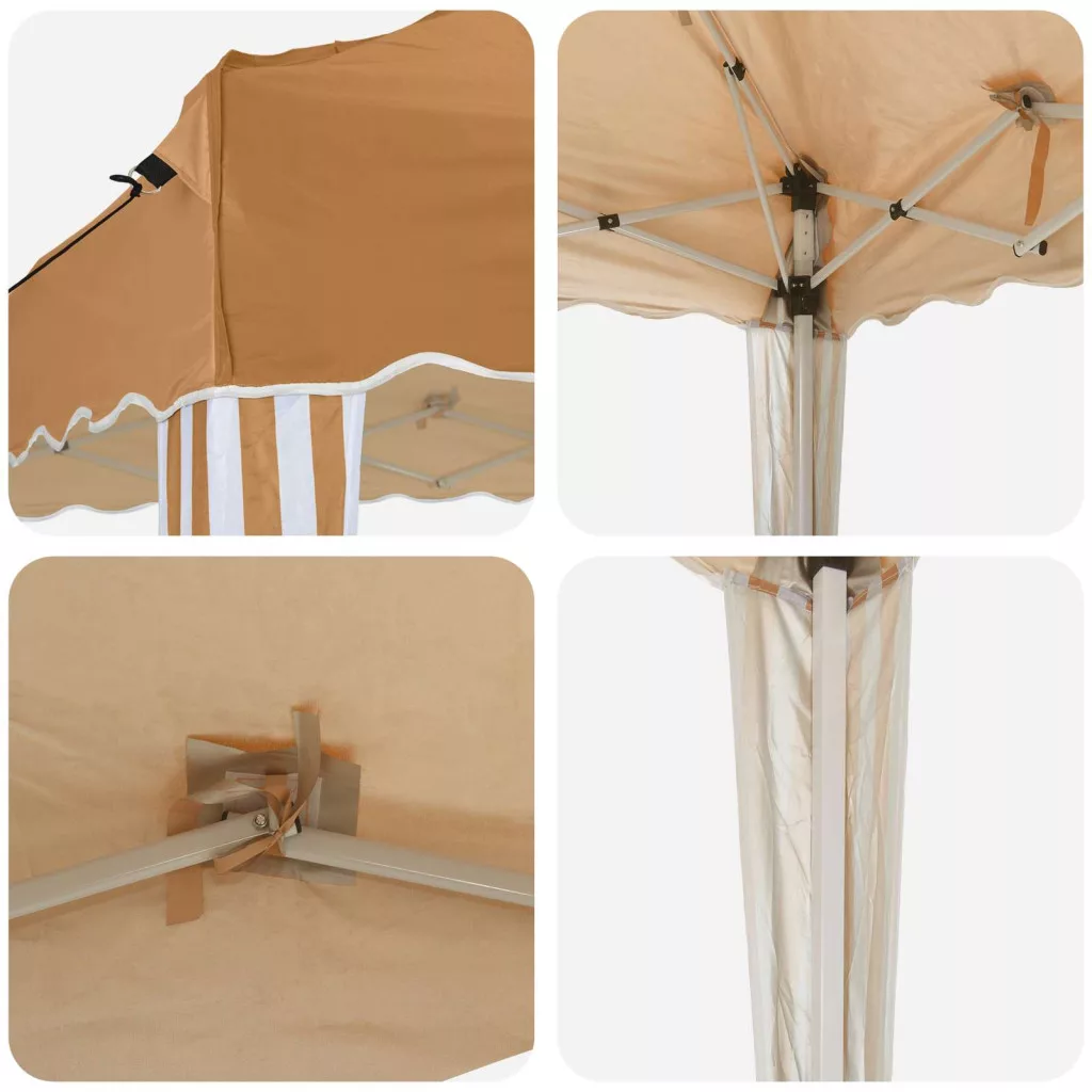- Oxford anyag A sátrunk prémium minőségű Oxford anyagból készült, ami tartós és hosszú élettartamú. Elegáns megjelenése miatt perfektül illik különböző kültéri dekorációkhoz, legyen szó bulikról, esküvőkről vagy más különleges eseményekről. Belső UV-védelme biztosítja, hogy a vendégek biztonságban legyenek a napsütéses időben.