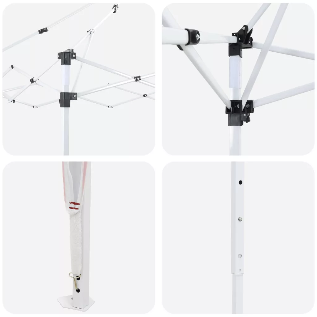- Funkciók /Tervezés: A sátor kézi magasságállító mechanizmussal van felszerelve, ami három szinten állítható. Ez rugalmasságot ad a különböző eseményekhez, így a vendégek kényelmesen mozoghatnak alatta. Modern designja miatt tökéletes bármilyen helyszínhez.