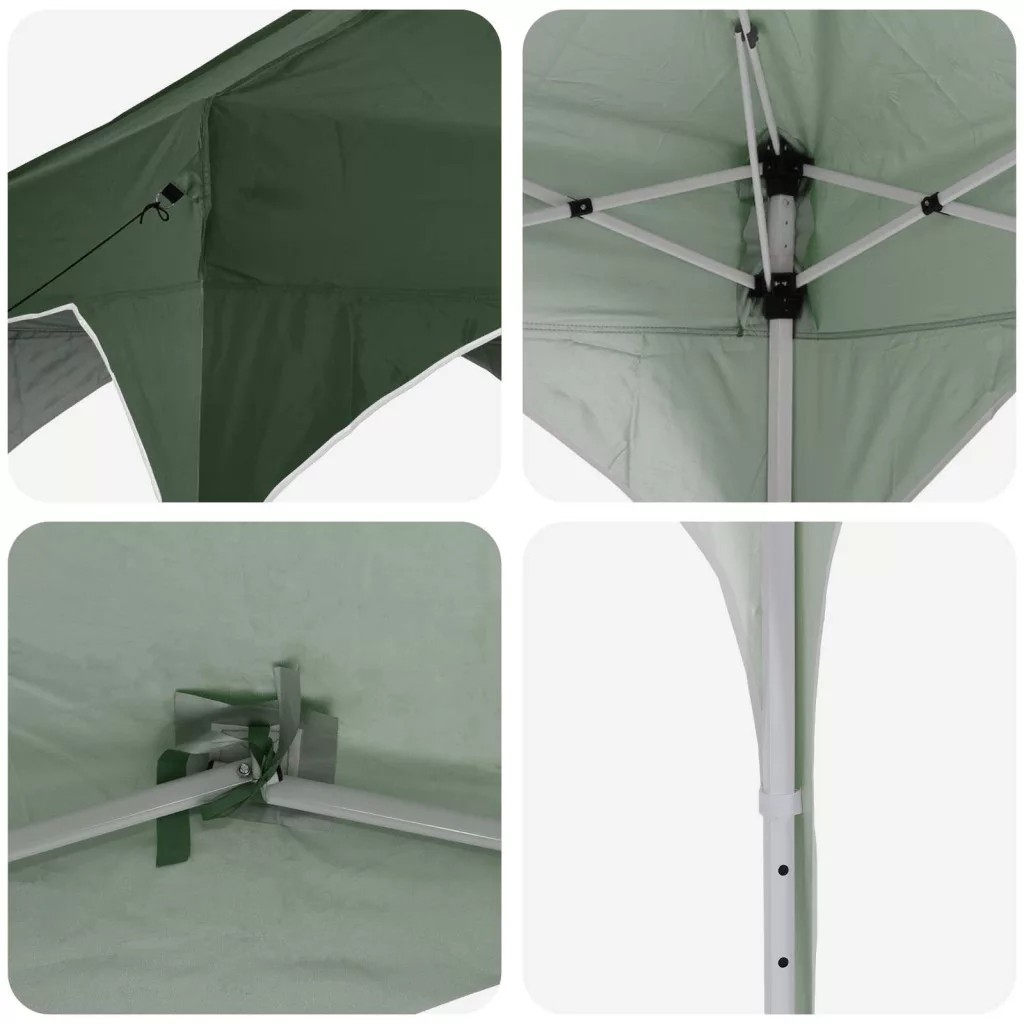 - Jellemzők / Funkció / Dizájn: A sátor manuális magasságállító mechanizmussal van ellátva, amivel három szint között választhatod meg a magasságot. Rugalmas dizájnja lehetővé teszi, hogy igazodj a különböző eseményekhez, miközben stabilan megáll.