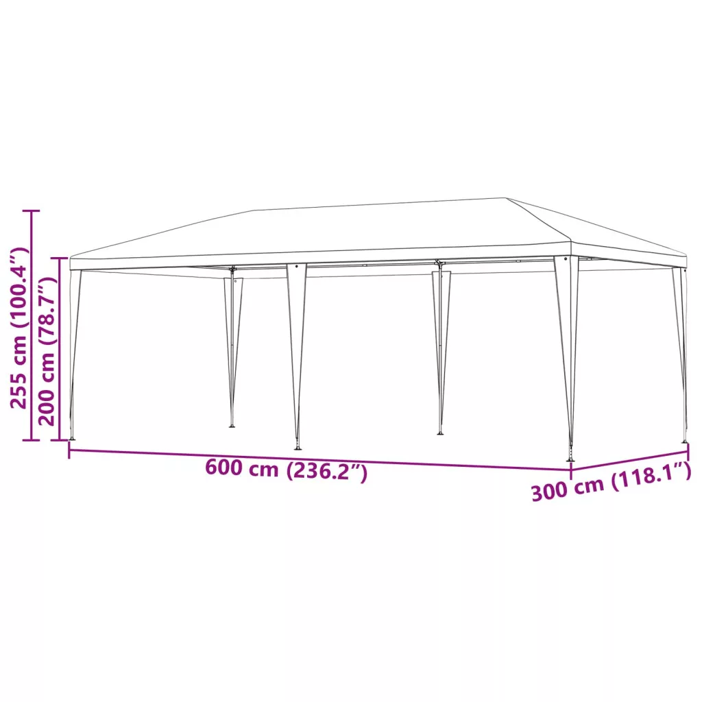 Ez a partysátor igazán praktikus nyári bulikhoz. Tágas, téglalap alakú teret kínál, ahol a vendégeidet kényelmesen elhelyezheted. Modern stílusával és funkcionális kialakításával tökéletesen illik bármelyik kerthez vagy kültéri eseményhez. Minimalista, de elegáns megjelenésével ideális a családi összejövetelekhez, esküvőkhöz vagy fesztiválokhoz. Az elegáns dizájn segít relaxálni és felejthetetlen élményeket nyújt, így a vendégeid biztosan emlékezetesen távoznak.