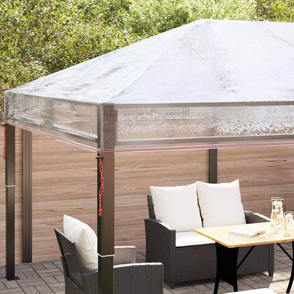 - Minőségi PVC anyag Ez a pavilon fedél elsőosztályú PVC-ből készült, így tartós és stílusos. Ellenáll a szélsőséges időjárásnak, megbízható védelmet nyújtva a szél és az eső ellen. Az átlátszó anyag miatt bármilyen kültéri dizájnhoz passzol.