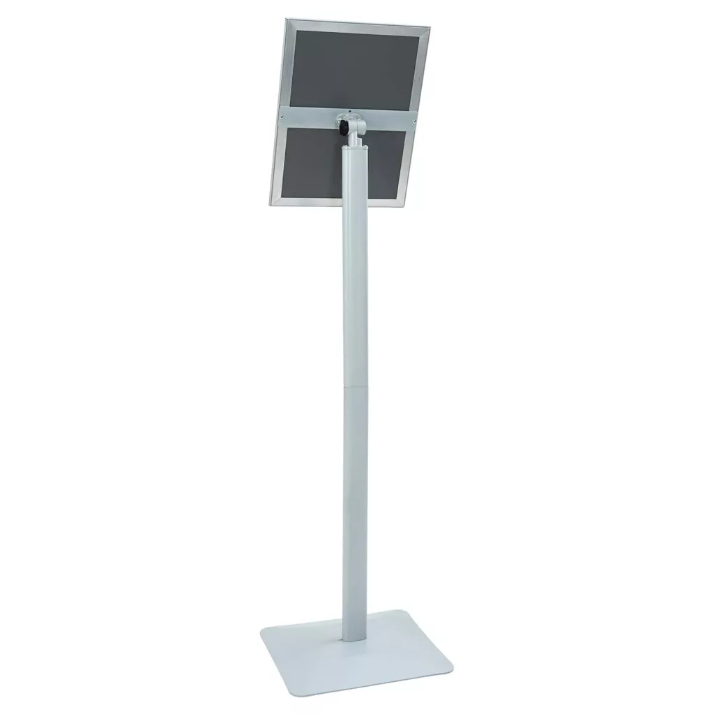 - Anyagösszetétel: A plakátállvány erős öntöttvas alappal és alumínium kerettel bír, ami biztosítja a stabilitást és a strapabírást. A kijelzőpanel PS lemezből készült, PVC védelemmel, így sima felületet ad a grafikai bemutatóknak, és lehetővé teszi a poszterek könnyű cserélését.