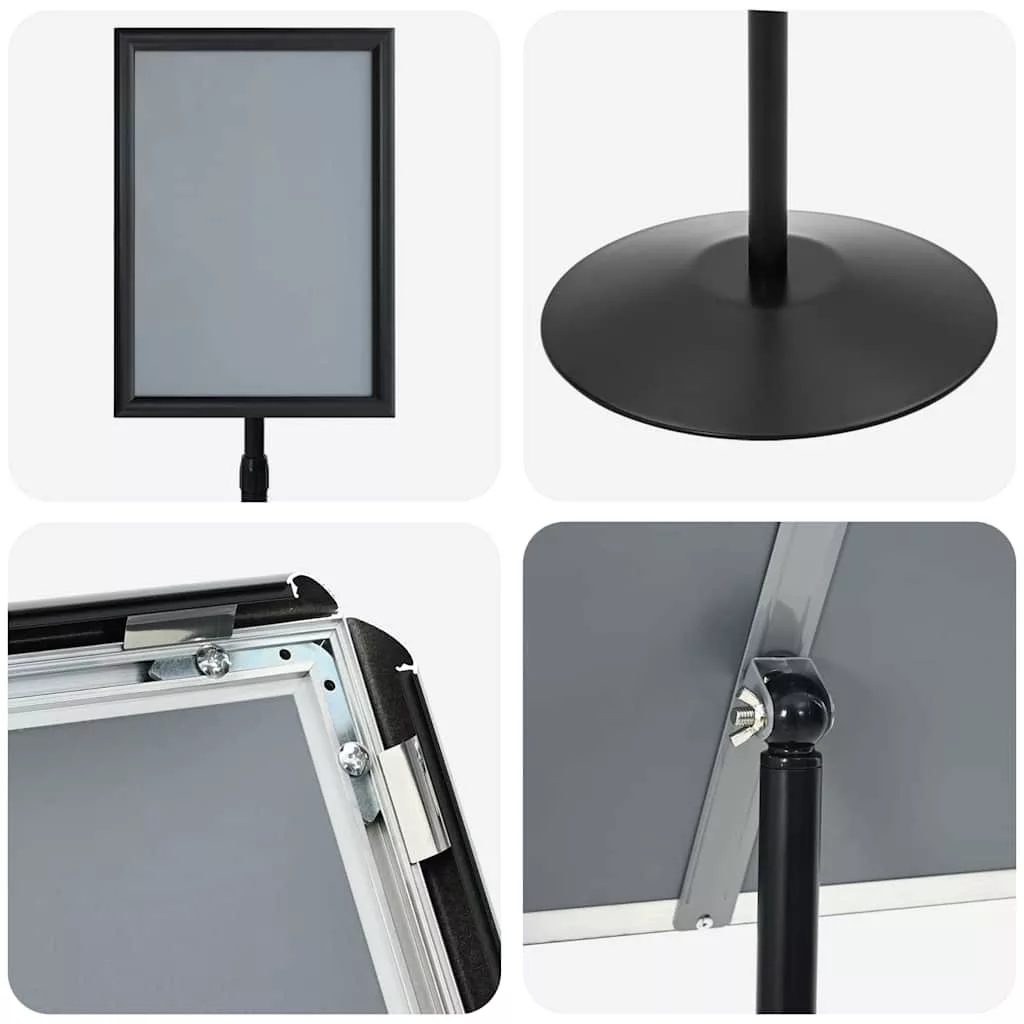 Ez a tartós posztertartó állvány egy sokoldalú megoldás üzleti megjelenítésekhez. Modern dizájnjával és tiszta vonalaival remekül illeszkedik bármilyen környezetbe. Fekete színe lehetővé teszi, hogy könnyen beilleszkedjen az irodákba vagy boltba, és tökéletes promóciós anyagok vagy fontos hirdetések bemutatására.