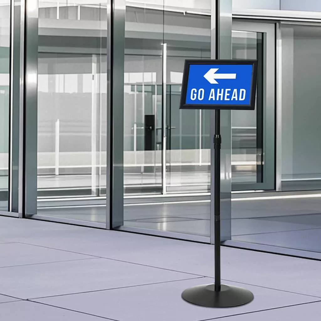 Ez a tartós posztertartó állvány egy sokoldalú megoldás üzleti megjelenítésekhez. Modern dizájnjával és tiszta vonalaival remekül illeszkedik bármilyen környezetbe. Fekete színe lehetővé teszi, hogy könnyen beilleszkedjen az irodákba vagy boltba, és tökéletes promóciós anyagok vagy fontos hirdetések bemutatására.