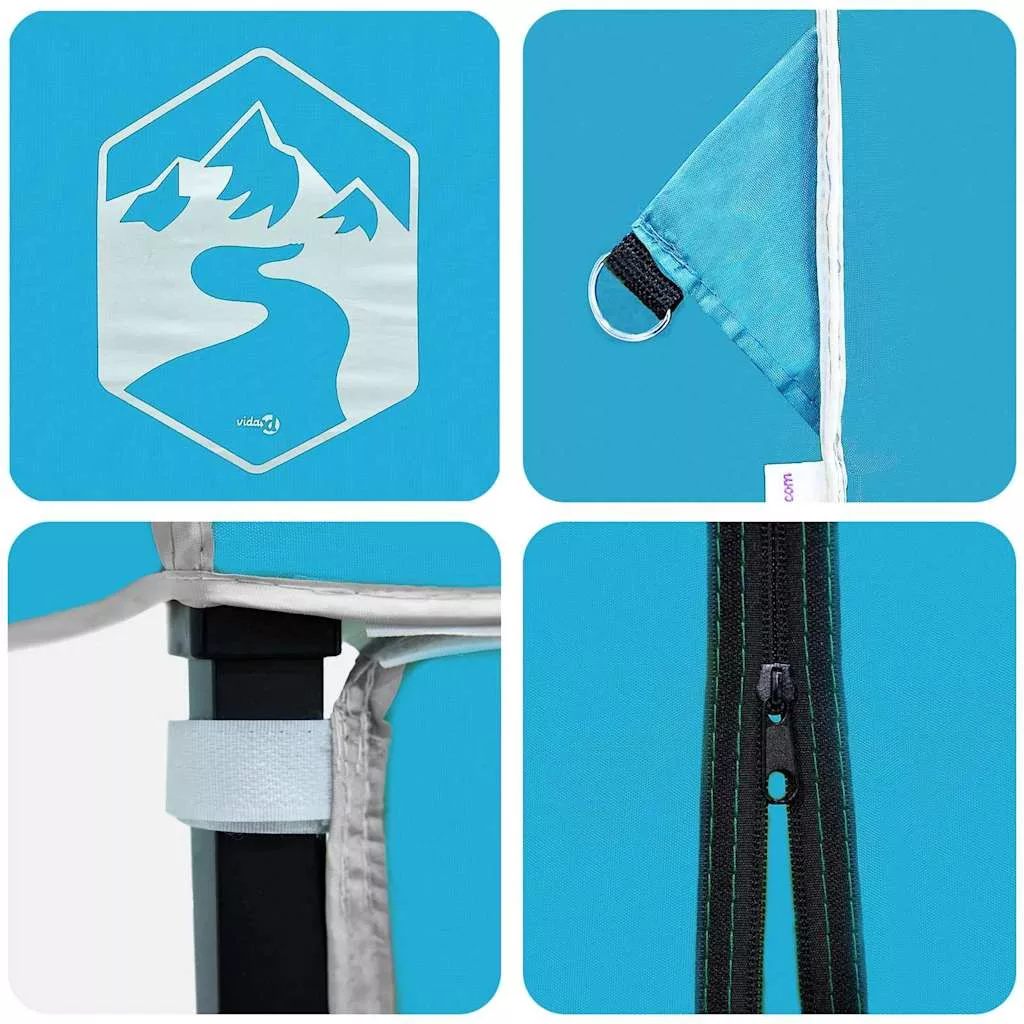 - Anyagok: Ez a sátor vízálló és UV védő anyagból készült, ami tartósságot garantál, még változó időjárási körülmények között is, így hosszabb ideig élvezheted a szabadban a nyugodt pillanatokat.