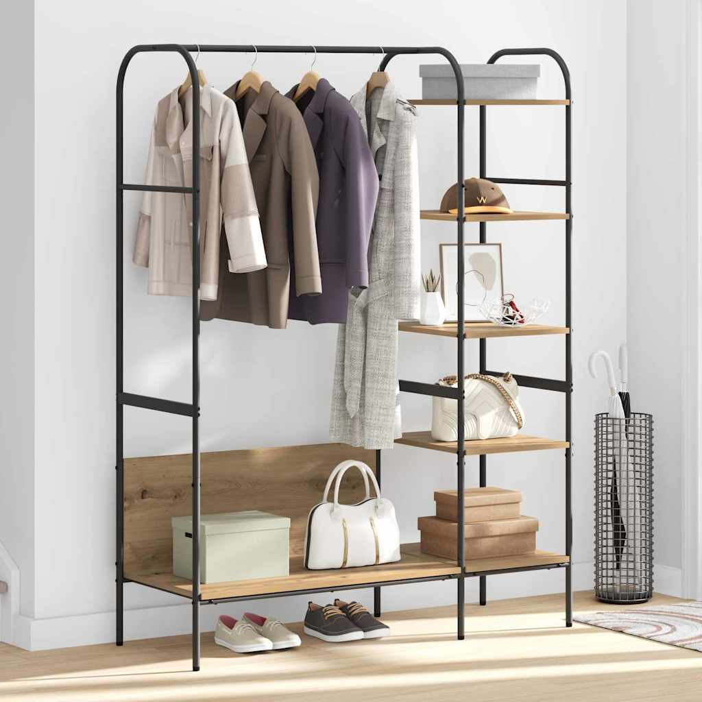 - A nyersanyag összetétele: Ez a ruhatartó erős, szerelt fából készült, és klassz megjelenést ad a funkcióknak. Az anyagok tartósak és könnyűek, így nem nehézkes a mozgatás.