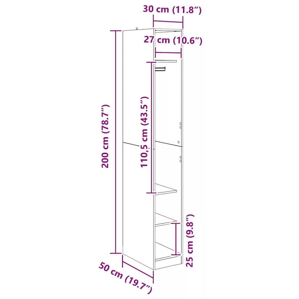 - Általános dimenziók: 50 x 30 x 200 cm (Ho x Szé x Ma)