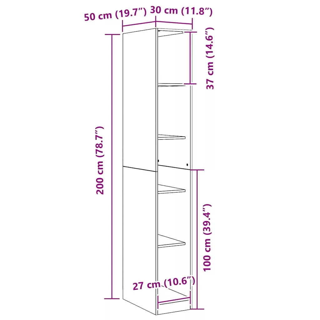 - Általános dimenziók: 30 x 50 x 200 cm (Ho x Szé x Ma)