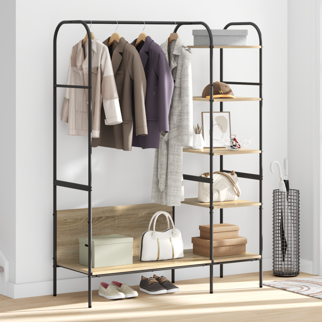 - A nyersanyag összetétele: Ez a ruhatartó erős, szerelt fából készült, és klassz megjelenést ad a funkcióknak. Az anyagok tartósak és könnyűek, így nem nehézkes a mozgatás.