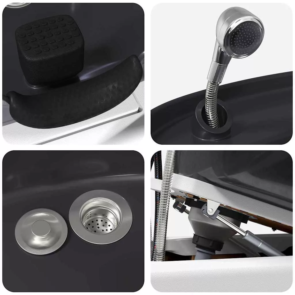 - Anyagösszetétel: PVC-ből és furnérból készült, ez a samponszék tartós, mégis könnyű, így ideális forgalmas fodrászatokba. A robusztus kerete védi a kopást, miközben a kényelem és a tartósság között teremt egyensúlyt.