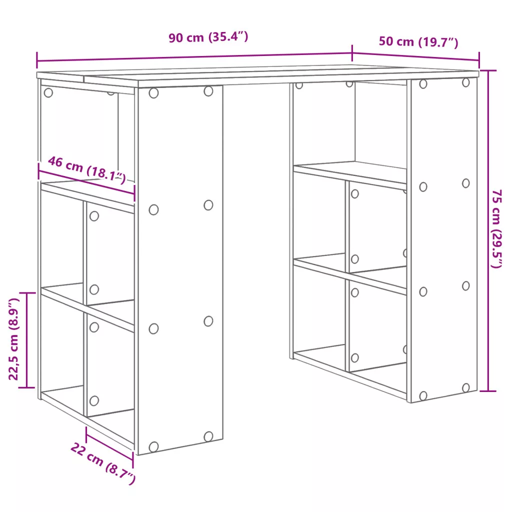 Ez a modern, beépített polcos íróasztal a legjobb, ha stílusos és praktikus munkateret szeretnél kialakítani. Tiszta téglalap formája és texturált felülete valódi kortárs dizájnélmény. Tökéletes városi lakásokhoz vagy otthoni irodákhoz, kényelmesen összeköti a stílust és a hasznot. Az engineered wood anyagodnak köszönhetően tartós és stabil, így bármilyen tevékenységhez, mint az írás vagy laptop használat, tökéletes választás.
