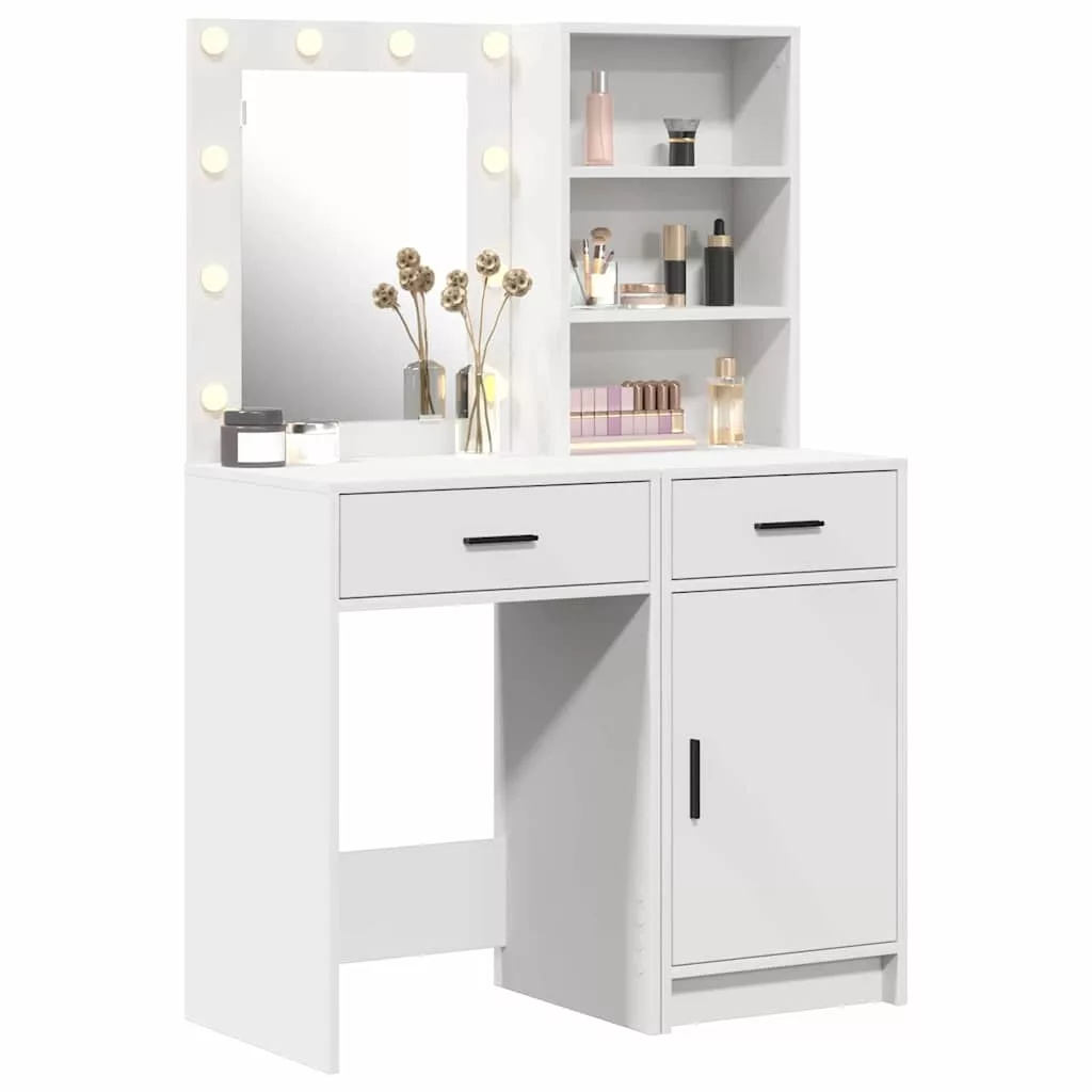 Ez a tükörasztal szett egyesíti a funkciót és a stílust, egy jó helyet adva neked a sminkhez és öltözködéshez. Modern dizájnja bármilyen kortárs hálószobába remekül illik, eleganciát hozva. Az LED világítás a tükörben megteremti a hangulatot a reggeli sietésekhez és a késő esti készülődésekhez, így igazán vonzó lehet a sminkkuckó kedvelőinek.