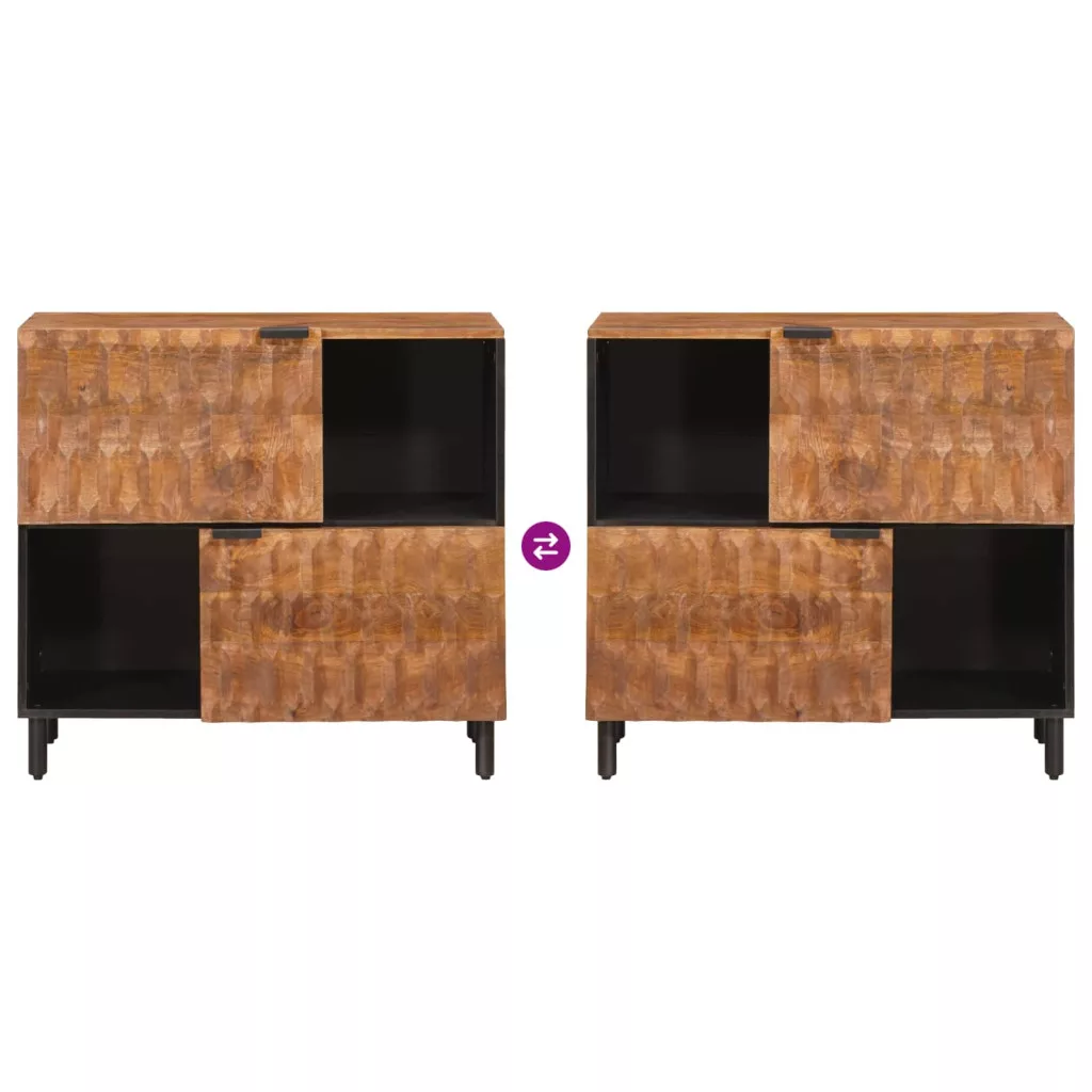 - Anyagok: Tömör mangófából készült, ez a sideboard a szépséget és a tartósságot egyaránt tükrözi. A mangófa tartós és masszív, hosszú távú használatra tervezve. A rétegelt fa felület teszi még elegánsabbá a megjelenését, bármilyen helyiséget feldobva.