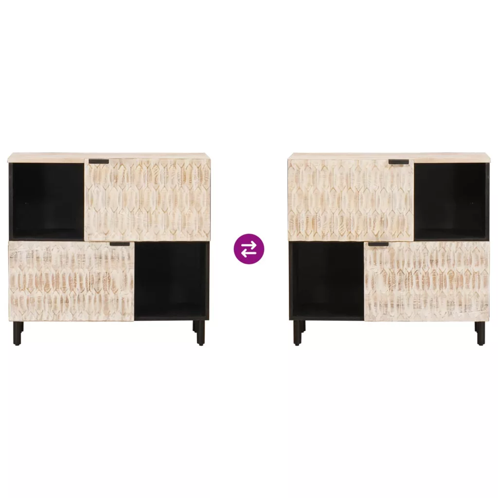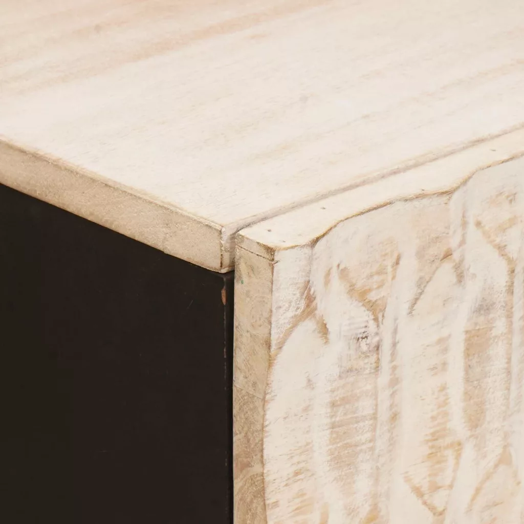 - Anyagok: Tömör mangófából készült, ez a sideboard a szépséget és a tartósságot egyaránt tükrözi. A mangófa tartós és masszív, hosszú távú használatra tervezve. A rétegelt fa felület teszi még elegánsabbá a megjelenését, bármilyen helyiséget feldobva.