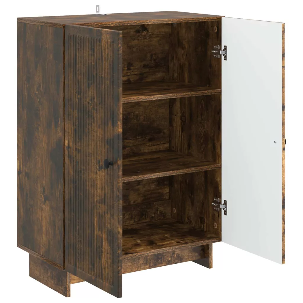 - Included Components: 90°-os lengőpántos ajtói segítenek könnyedén hozzáférni a tárolt dolgokhoz. A vintage stílust kiemelő fém gombok erősítik a funkciót, miközben a belső polcok széles spektrumú tárolási lehetőségeket kínálnak, a tányéroktól a dekorációkig. Ezek a tulajdonságok nagyban növelik a komód hasznosságát és vonzerejét.