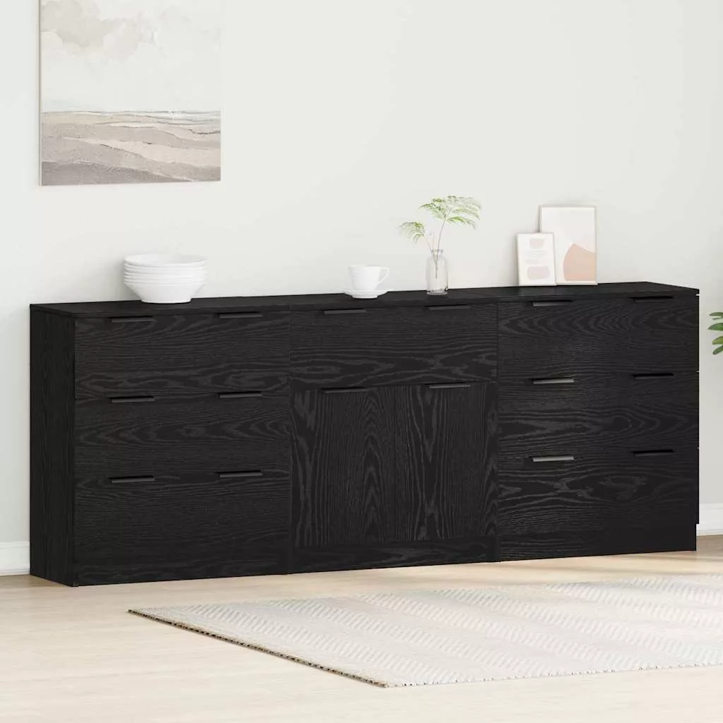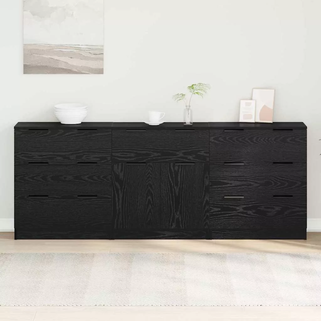 - Sima fogantyúk: Elegáns fekete fogantyúk adnak hozzá egy stílusos érintést, megkönnyítve a fiókok elérhetőségét, miközben a süllyesztett ajtók sima esztétikáját sem zavarják. Az egyenes dizájn jól passzol a modern tárolószekrény stílusához.