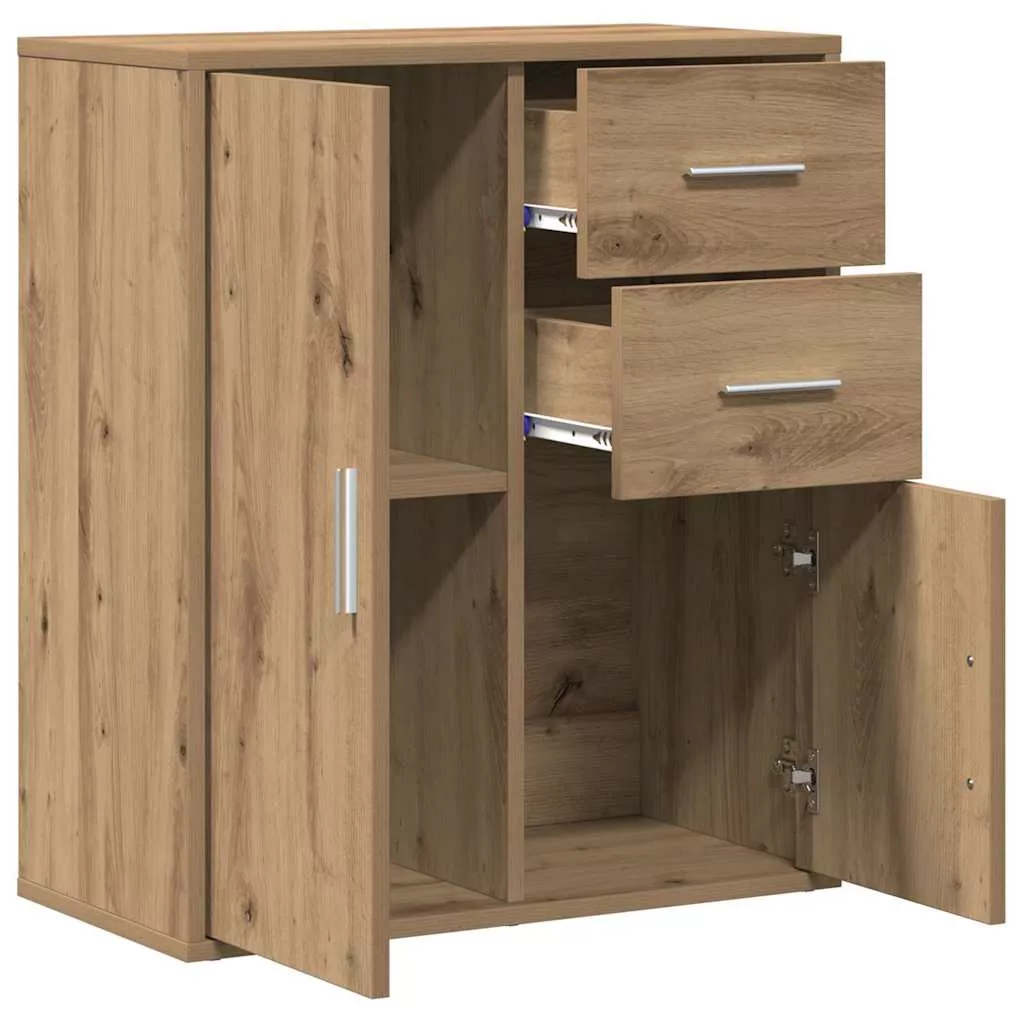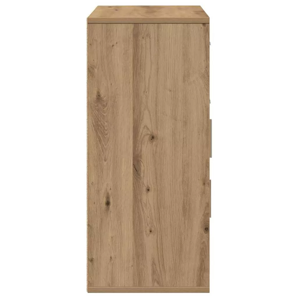 - Anyagok: Az engineered wood szerkezetével ez a tálalószekrény tartós és stílusos. Az engineered wood textúrája kiegészíti a modern teret, és tartós struktúrát biztosít a napi használathoz. Stabil felépítése garantálja a hosszú élettartamot, megőrzi sima felületét és vonzó megjelenését a különböző dekorációk mellett.